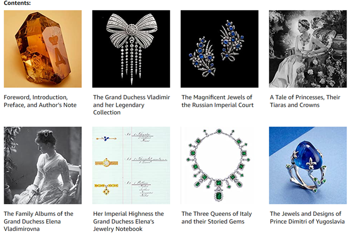 "In this wide-ranging tome, with the subtitle, ‘a family tradition of royal jewels’ Prince Dimitri shares previously unseen family photo albums belonging to the Grand Duchess Elena of Russia as well as a catalogue of the legendary collection of jewels of the leading women of the European and Russian courts. Prince Dimitri’s first-hand knowledge of this fascinating world, offers a fascinating glimpse into the life of the aristocracy on the cusp of the Russian Revolution....Think of it as a ‘who’s who’ and ‘who owned what’ of jewellery during one of the most exquisite periods of jewellery creation with the frisson of a peek behind the scenes." — THEJEWELLERYEDITOR.COM