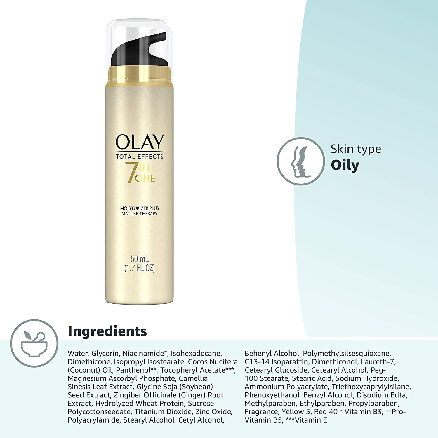 Olay Total Effects 7-In-1 Face Moisturizer Plus Mature Therapy, Beige, 1.7 Fl Oz