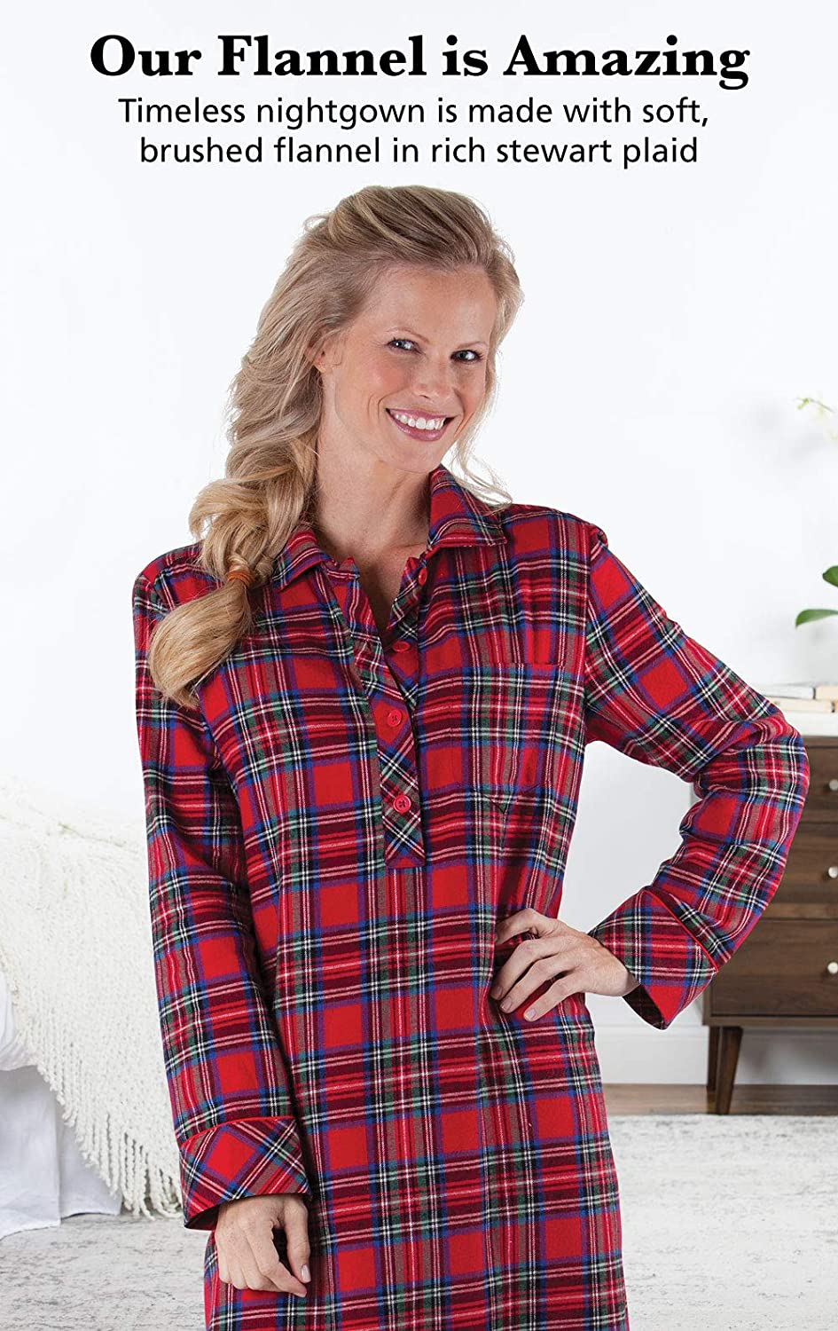 • Ample coverage - Answer the door with confidence in this classic full-length women's nightgown, designed to cover you from neck to ankles in rich plaid flannel