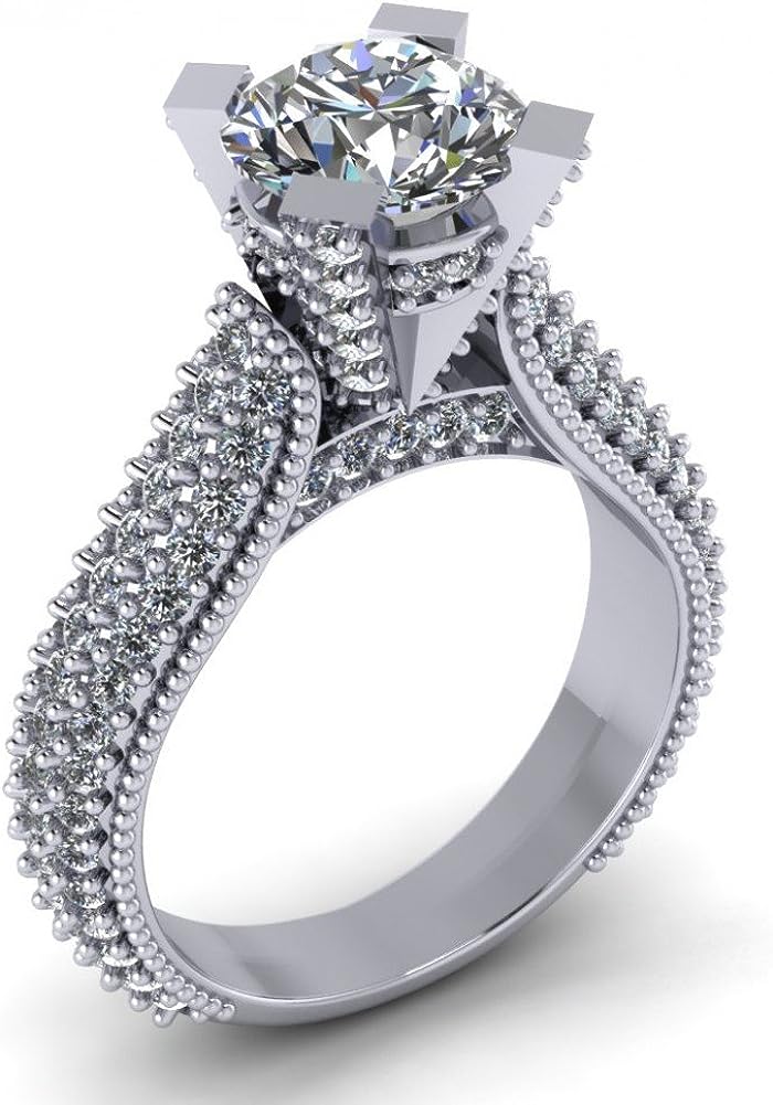 Madina Jewelry 2.65 ct Pave Set Round Cut Diamond Engagement Ring in Platinum