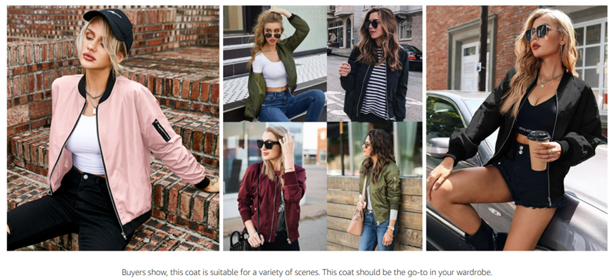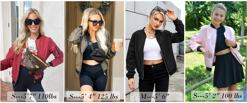 [Material]: The bomber jacket is made of lightweight, high-quality fabric. It is a very basic solid color coat