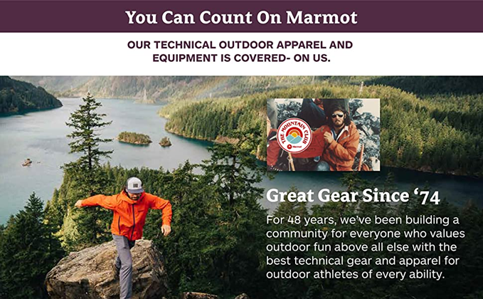 • We Have You Covered - With Marmot, we warrant every product we make to be free of manufacturer defects. The best part is you do not need to register your product. Our lifetime warranty covers you from the moment you purchase our apparel or equipment.