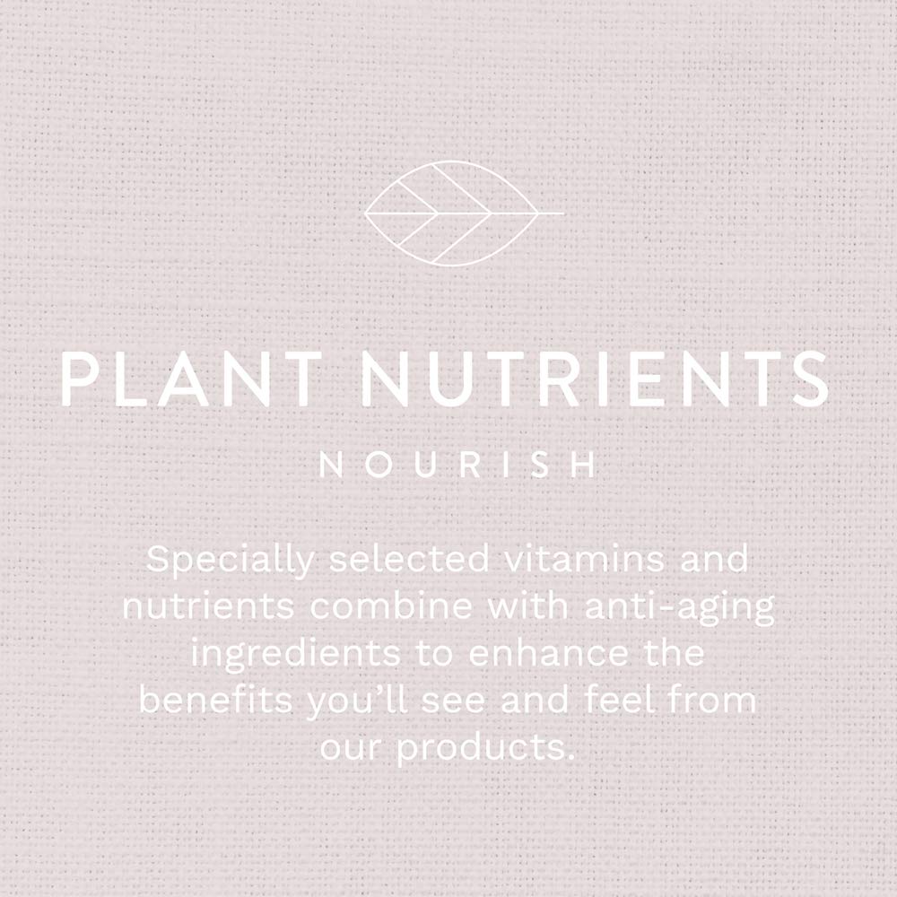 VITAMINS & NUTRIENTS: Our specially selected vitamins and nutrients are combined with our anti-aging ingredients to enhance the benefits you’ll see and feel from our products. Vitamins and nutrients moisturize and soothe your skin while our anti-aging ingredients work to reduce the appearance of lines and wrinkles.