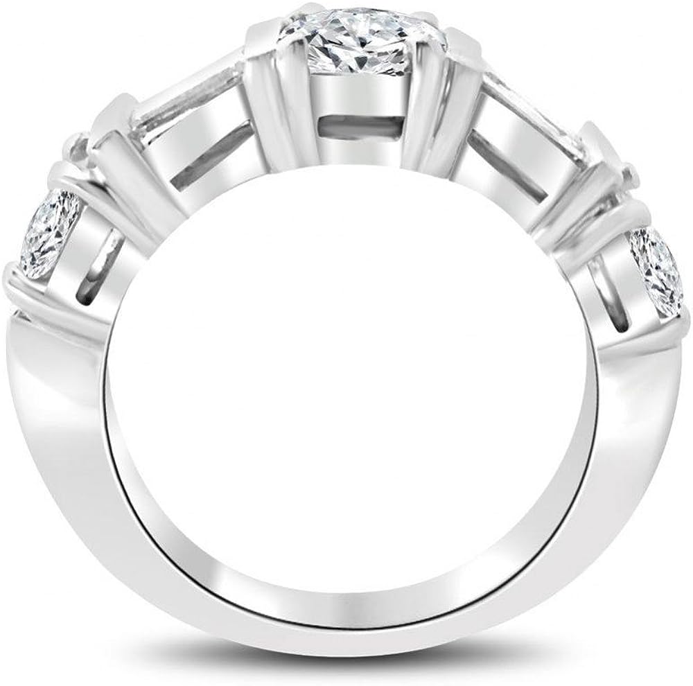 Madina Jewelry 1.54 ct Round and Baguette Cut Diamond Wedding Band Ring in 14 kt White Gold