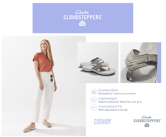 This lightweight Cloudsteppers flip flop benefits from a hook and loop closure that ensures a secure fit. An EVA midsole helps it feel weightless and an airy EVA footbed absorbs shock without adding weight.