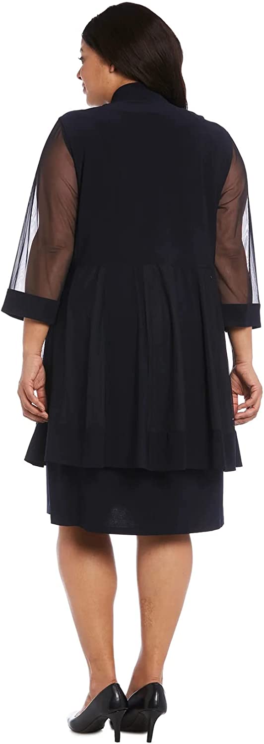 R&M Richards Women's One Size 2 Piece Mesh Panel Beaded Neck Jacket Dress