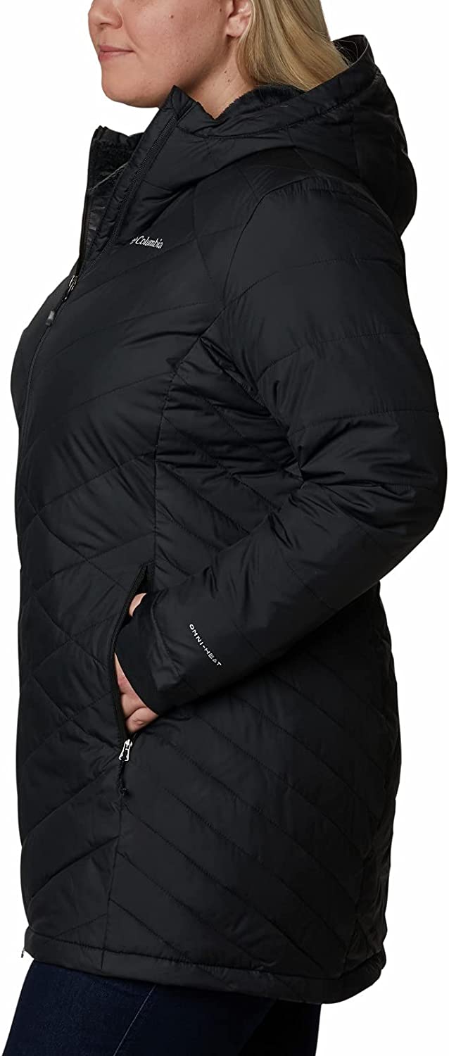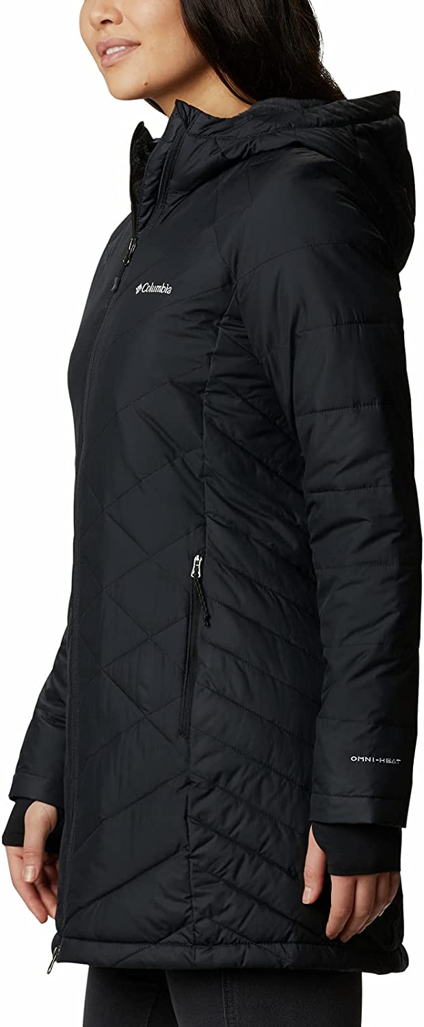 The Columbia Women's Heavenly Long Hooded Jacket combines stylish urban looks with technology to keep you warm and dry. Made for women, this great fall and winter jacket features a long silhouette with a modern fit and drop tail. Crafted of a water resistant shell, lined with Omni-HEAT reflective lining, along with a yummy plush fleece lined collar, quality assembly, construction, and stitching, the advanced technology infused into this jacket will instill a sense of confidence when the weather turns super blustery and cold. Unique to this jacket, the sleeves have built-in thumb holes and comfort cuffs to provide a sense of control and warmth to your arms and hands. The two-way main front zipper provides up/down options for flexibility of movement and warmth control when needed, while the zippered side pockets keep your small items secure (including your hands when the outdoors get extra cold). The water resistant fabric keeps you protected during unexpected downpours. This women's winter jacket is offered in multiple colors and sizes. Extended sizing available. Active and Regular Fit. To ensure the size you choose is right, utilize our sizing chart and the following measurement instructions: For the sleeves, start at the center back of your neck and measure across the shoulder and down to the sleeve. If you come up with a partial number, round up to the next even number. For the chest, measure at the fullest part of the chest, under the armpits and over the shoulder blades, keeping the tape measure firm and level.