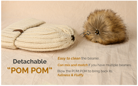 • ?Pom Pom Hat - The winter hat with a fur pompom,this puff ball is bigger,super cute and removable;We use the same color or raccoon fur faux fur pompom as the hat when they combine together will look matched;The pom pom snaps securely in place when you want to wear it, and is easily removable when you don't;