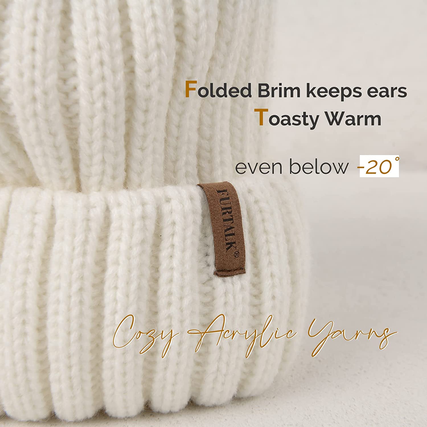 FURTALK Womens Winter Knitted Beanie Hat with Faux Fur Pom Warm Knit Skull Cap Beanie for Women…