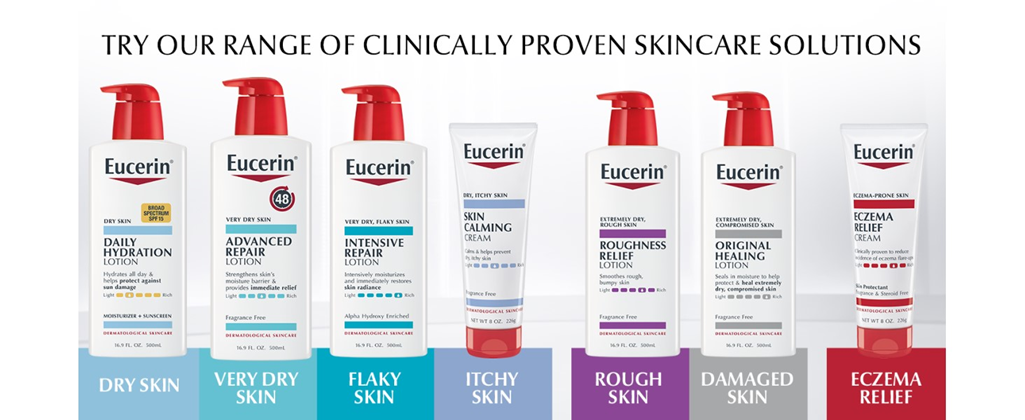 Fight dryness at its source with Eucerin Advanced Repair Body Lotion. This Eucerin lotion for dry skin provides 48 hour moisture for skin that looks and feels healthy. Eucerin Advanced Repair Body Lotion for dry skin is formulated with ceramides to help strengthen the skin’s moisture barrier to lock in moisture. It is also formulated with Natural Moisturizing Factors, amino acids that are naturally found in the skin, to boost moisture and help prevent dryness. This Eucerin sensitive skin lotion formula is lightweight and fast-absorbing, and smoothes, repairs and hydrates dry skin. This Eucerin body lotion for sensitive dry skin is fragrance free, dye free, paraben free. This body moisturizer can also be used as a hand lotion or foot lotion. To use, smooth this Eucerin dry skin lotion onto your skin daily. For best results, apply after showering. Eucerin is a dermatologist-recommended skincare brand that is based on an uncompromising approach to science. With skin care products designed to restore and sustain healthy-looking skin, families everywhere look to Eucerin to enhance outer beauty and self-confidence.