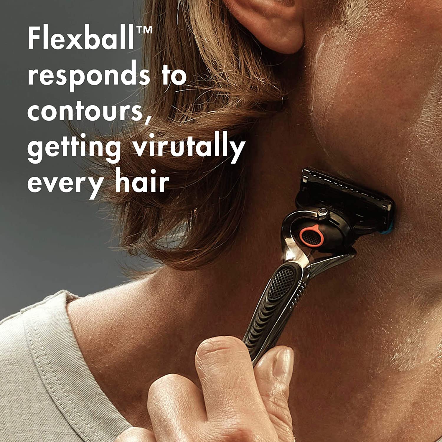 The Gillette ProGlide men's razor with FlexBall technology responds to your contours giving you uncompromising closeness and comfort. The handle’s FlexBall technology responds to contours and the blade refill features 5 antifriction blades for a shave you can barely feel. The blades are spaced closely together for incredible comfort with a precision trimmer on the back for hard to reach places and for styling your facial hair just the way you want it. The enhanced lubrastrip (vs. Fusion5) has more lubricants for comfort and glide. This enhanced lubrastrip also fades when you are no longer getting an optimal shave. Soft microfins gently stretch and smooth your skin to prepare hairs for a close shave while a microcomb helps guide your hair for a close shave from our thinnest blades. The ProGlide razor for men features our sharpest blades (first 4 blades) which help get virtually every hair effortlessly. One razor blade refill lasts up to one month of shaves. All ProGlide blade refills can fit all Gillette 5 blade razor handles (excluding GilletteLabs).