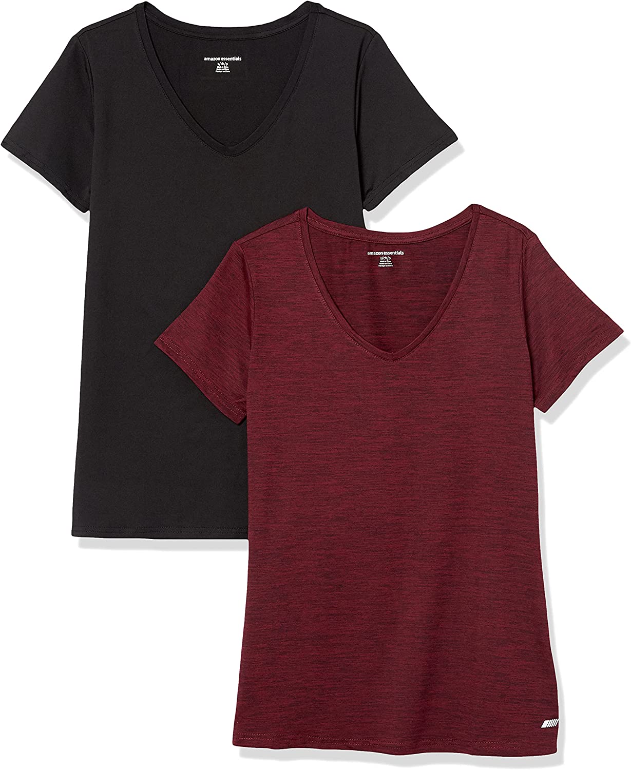 Amazon Essentials Women's Tech Stretch Short-Sleeve V-Neck T-Shirt (Available in Plus Size), Multipacks