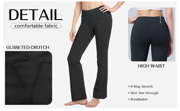 √ 4-WAY STRETCH & SLIGHT FLARE - 4-way stretch material to promote both compression and support. Slight flare at cuffs design to create a leg-lengthening silhouette,giving a streamlined look.
