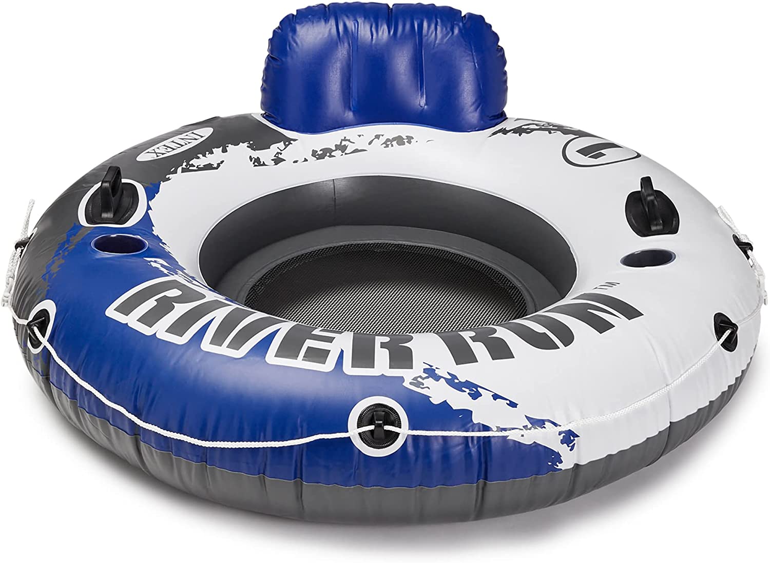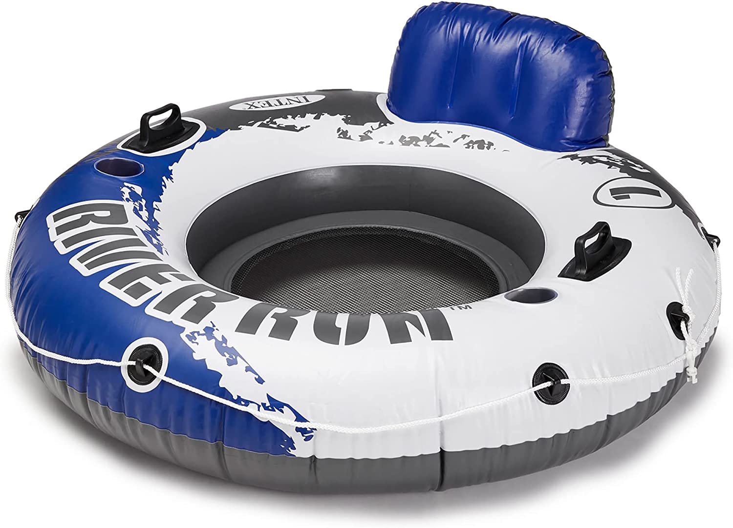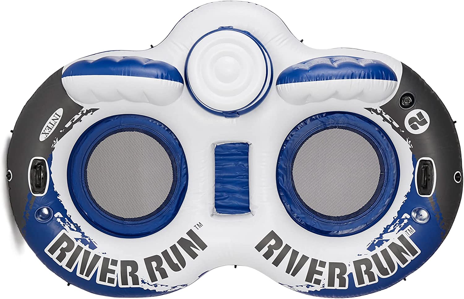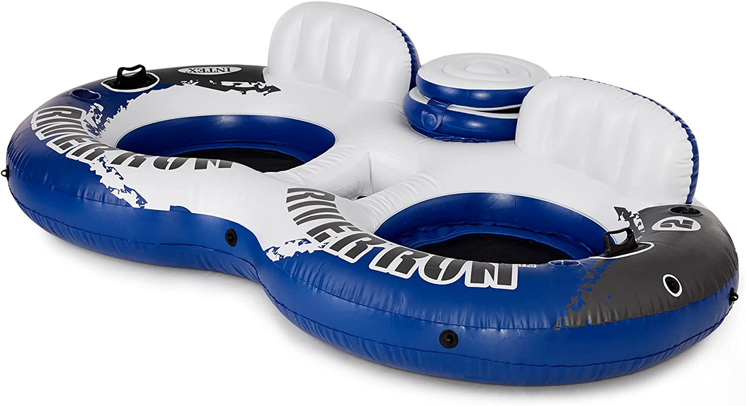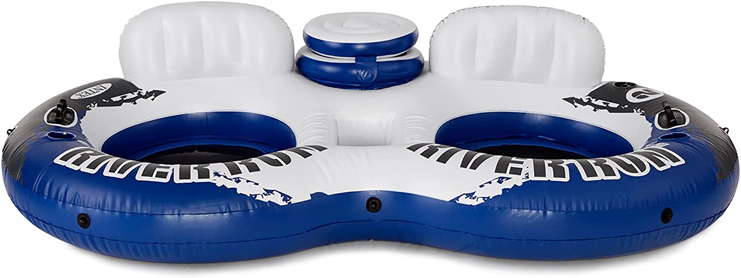 Ride the wake all summer long with the River Run 2-Rider and River Run Single Water Rafts from Intex. The Intex River Run 2-rider allows you to relax in style with your favorite beverage within close reach. Built with 2 cupholders and a built-in color with an easy-to-close lid, you'll have everything you need right at your fingertips. While the 2 single rider rafts, provide a separate air chamber in the backrest that inflates for ultimate relaxation while floating. Each float is durably constructed of tough 18-gauge vinyl for long-lasting use but is still light in weight for simple transportation. Dual air chambers ensure extra stability, so you don't rock or tip over. Equipped with an all-around grab rope, you can get on and off the tubes with ease. Easy-to-use connectors let you link the floats together to keep your friends close by. The mesh bottom on each float keeps you warm even on the hottest of days. Make the most of the lake this summer with the River Run Double and Single Rider Water Floats from Intex.