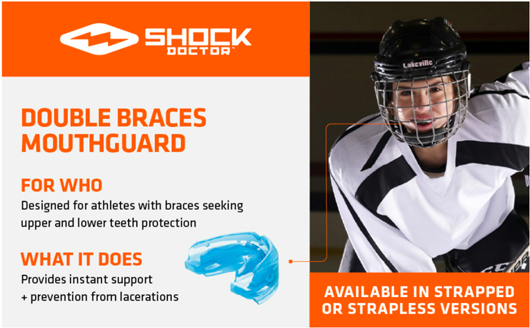 Shock Doctor Double Braces Mouth Guard. Upper and Lower Teeth Protection. Mouthguard No Boil / Instant Fit. For Youth, Teenager, Kids and Adults. Mouth Piece OSFA