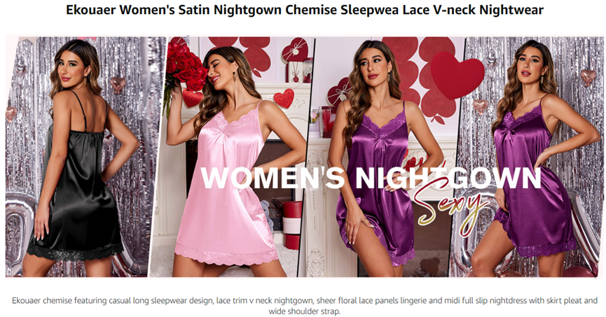 • Wonderful sleepwear lingerie, wide shoulder straps that offers sleek looks and comfort