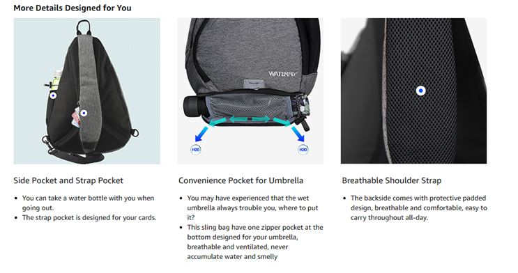 • INNOVATION UMBRELLA POUCH & WATER BOTTLE HOLDER: A zippered mesh net storage at the bottom for wet umbrella or wet towel. The side water bottle holder provides stable brace during outdoor sports. For the convenience, it features the hidden back pocket and shoulder strap pocket(Suitable for credit cards, money bills and phones smaller than 5.8 inches in size)