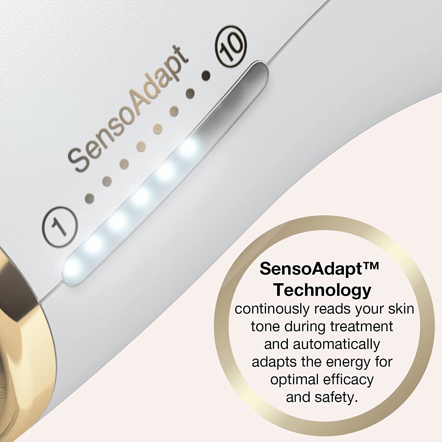 IPL (Intense Pulsed Light) hair removal technology works beneath the skin surface by targeting the melanin, the pigment in your hair follicle, helping to break the cycle of hair re-growth. This stimulation by the light has a ‘damaging’ effect on the root and after a few treatment sessions, will inhibit the root to produce new hair. With continued, periodic use, the light energy helps prevent unwanted hair from reaching the skin surface. Braun Silk-expert Pro 5 IPL uses our unique SensoAdapt technology to provide safe and effective long lasting reduction in hair regrowth.**
