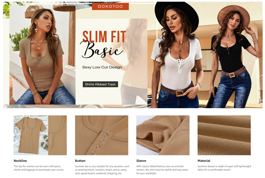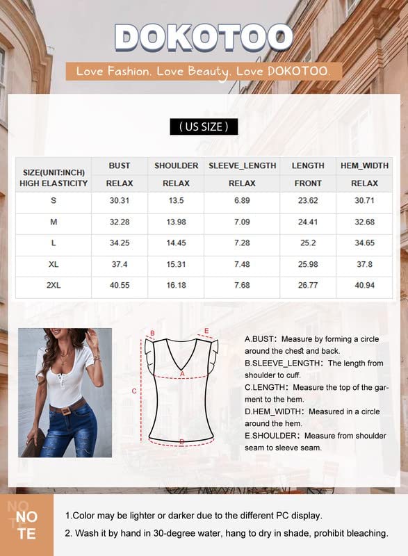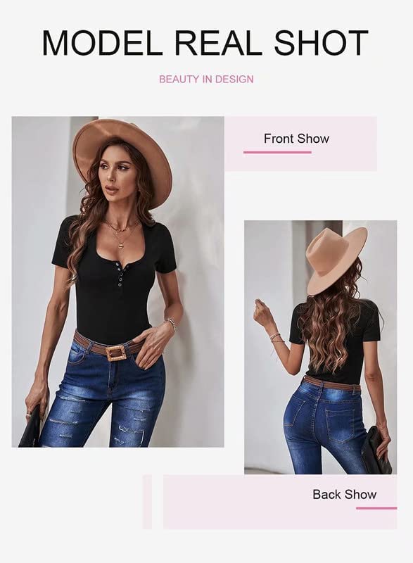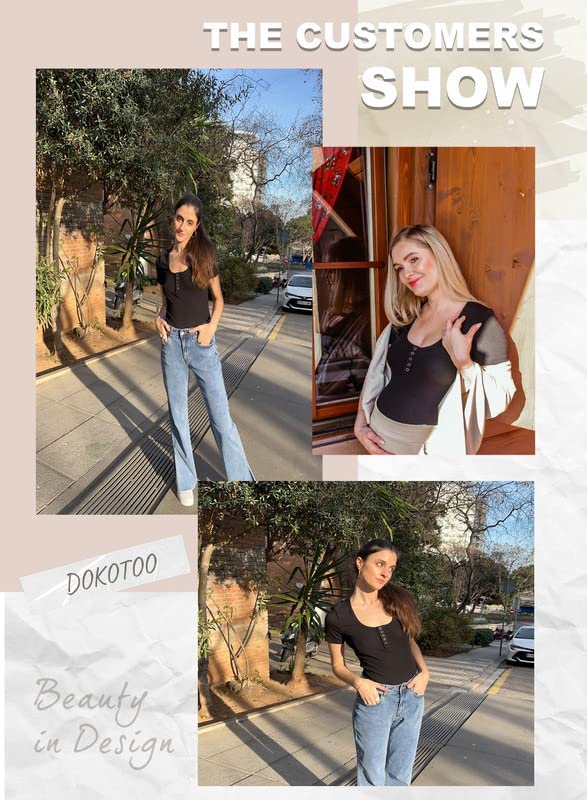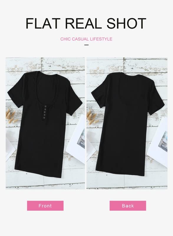 Dokotoo Womens Basic Ribbed Low Cut Button Down Tight Slim Fitted Tee Tops T Shirts