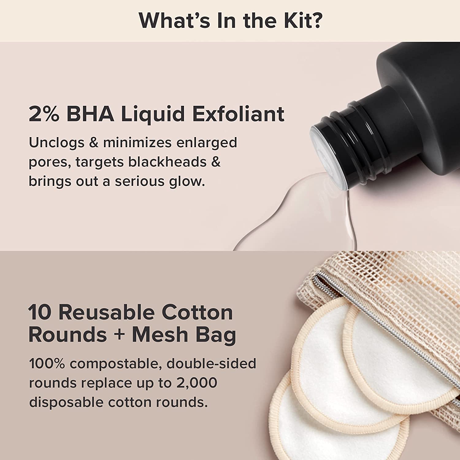 SUSTAINABLE SKIN CARE: Take exceptional care of your skin & the planet with this eco-friendly set. It includes the iconic 2% BHA Liquid Exfoliant & our exclusive Reusable Cotton Rounds to give you a flawless application again & again.