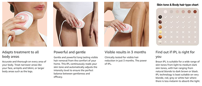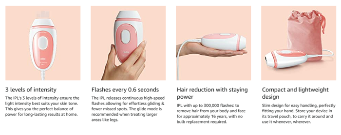 • Safe, easy and efficient IPL¹: long-lasting hair reduction in just 3 months*, from home.*If used per the recommended regimen, individual results may vary