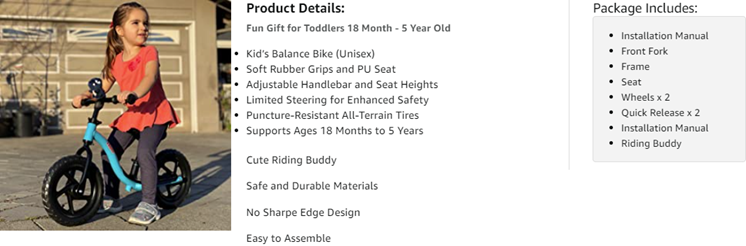 - EXTRA-THICK ALL-TERRAIN TIRES – We want kids to feel strong and stable when they’re moving on grass and sidewalks which is why we added puncture-resistant tires to the front and back of each balance bike for 4-year old’s and 18-month-old riders.