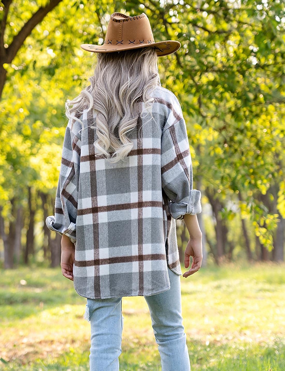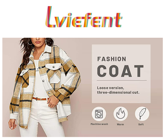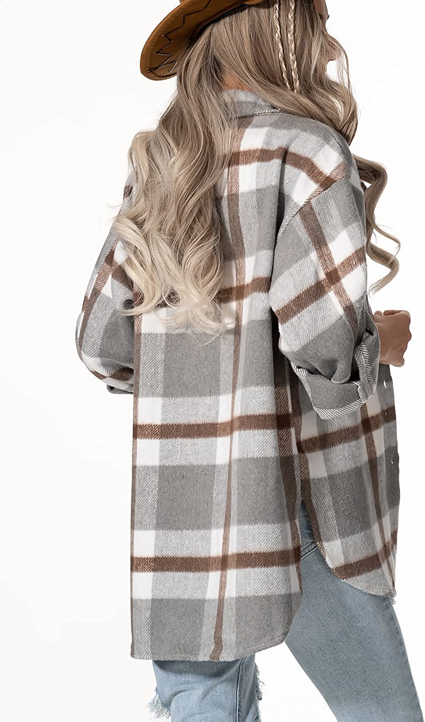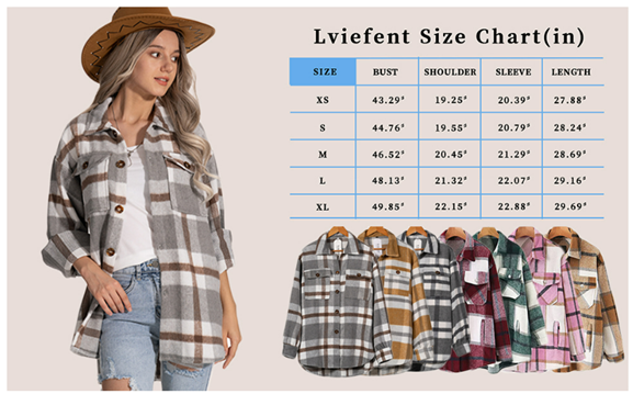 Lviefent Womens Casual Wool Blend Plaid Flannel Shackets Jacket Button Down Shirt Coat