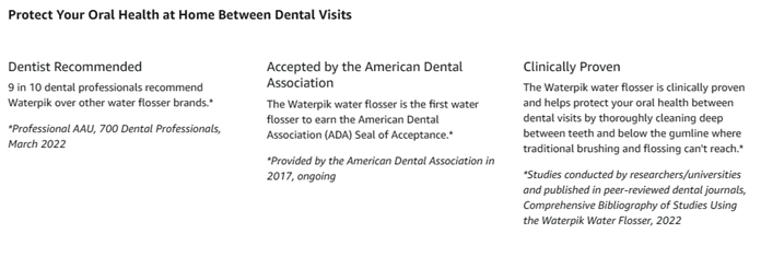 • DENTIST RECOMMENDED: 9 in 10 dental professionals recommend the Waterpik brand. Waterpik is clinically proven and the first water flosser brand to earn the American Dental Association (ADA) Seal of Acceptance.