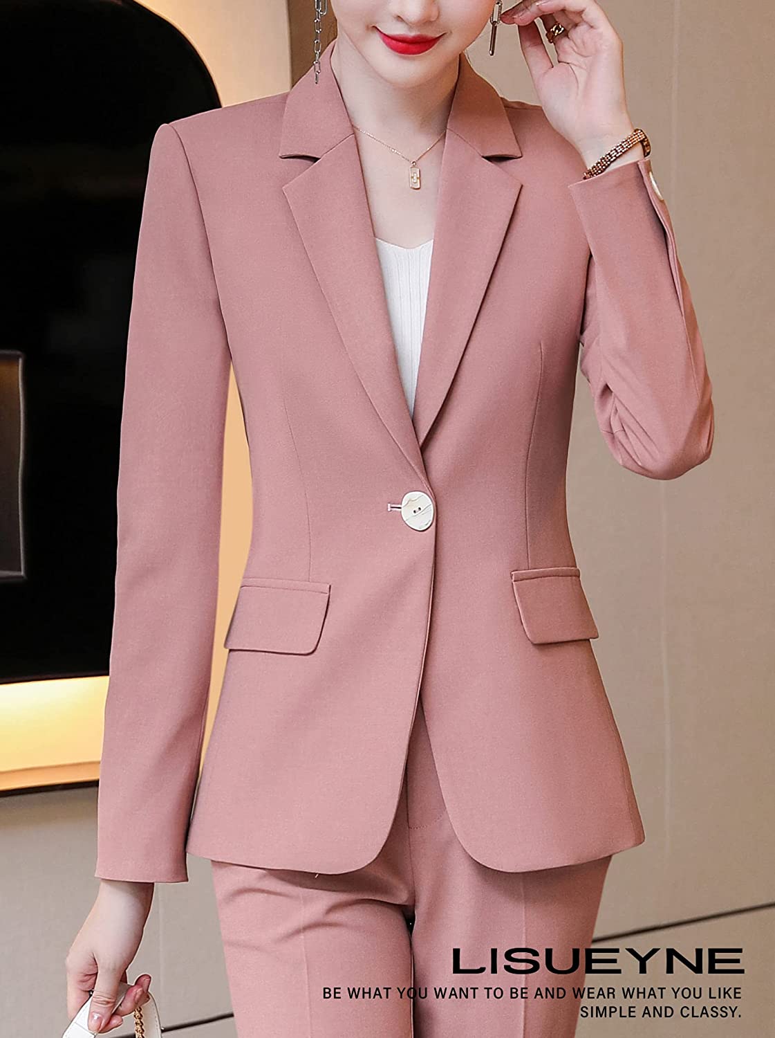 LISUEYNE Women’s Two Pieces Blazer Office Lady Suit Set Work Blazer Jacket and Pant