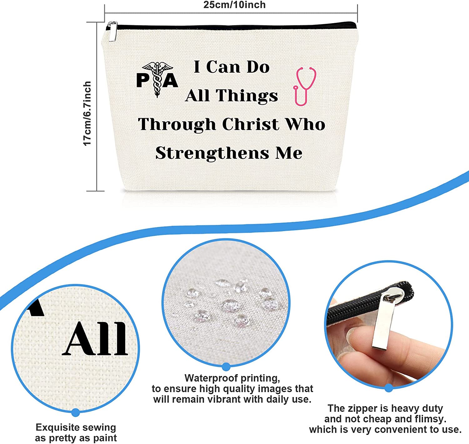• Physician Assistant Gift:Cosmetic Pouch Gift - I Can Do All Things Through Christ Who Strengthens Me PA.This is an inspirational words from the Bible Verse expresses a powerful spiritual strength and perseverance.A nice gift to encourage your favorite Physician Assistant.