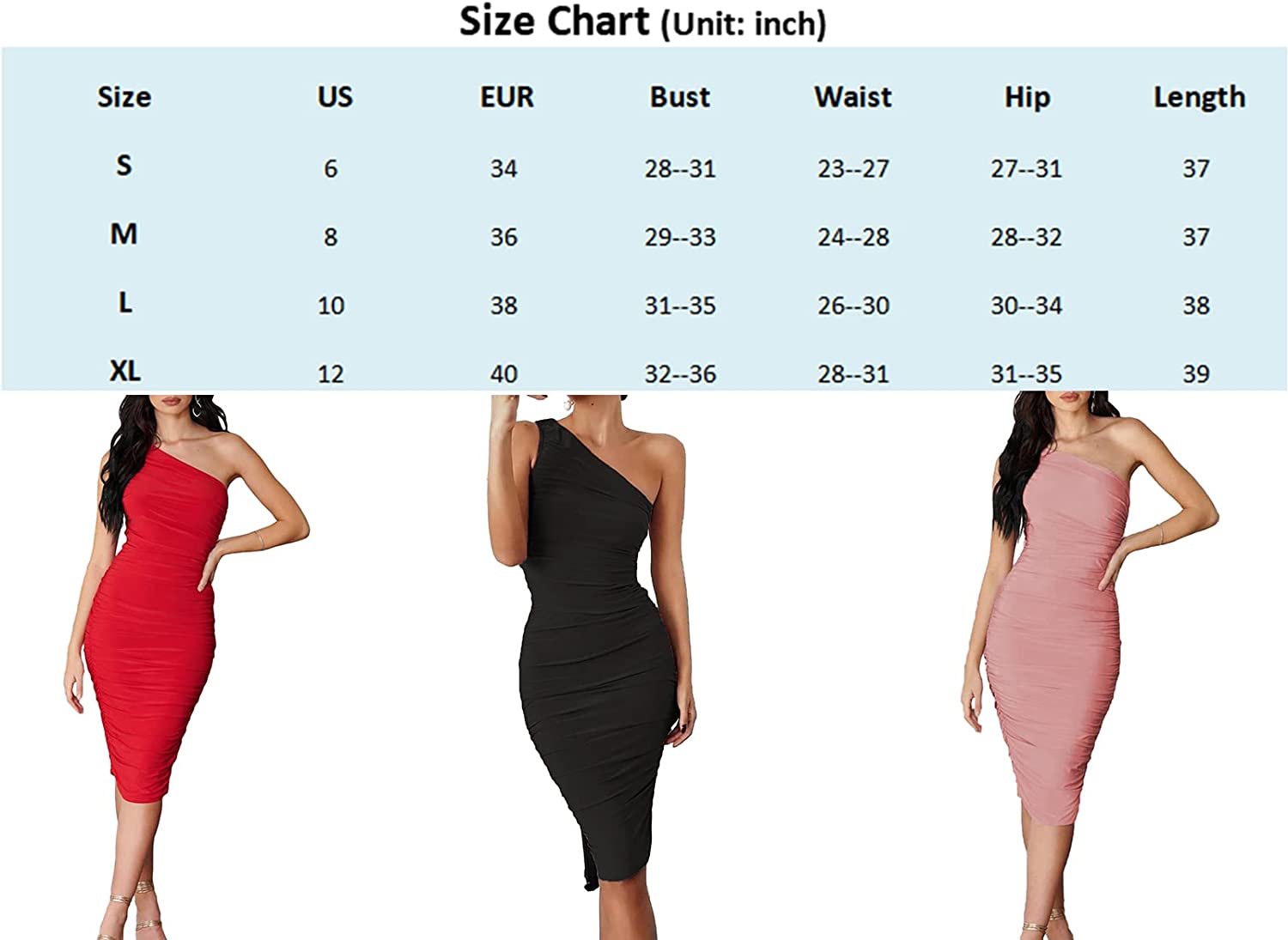 • ღThe tight dress for women features with one shoulder, sleeveless, ruched, solid color, midi-length, slim fit like gloves. With sexy off one shoulder design and special lines on the back, the bodycon midi dress shows your beautiful curves and gorgeous fashion style
