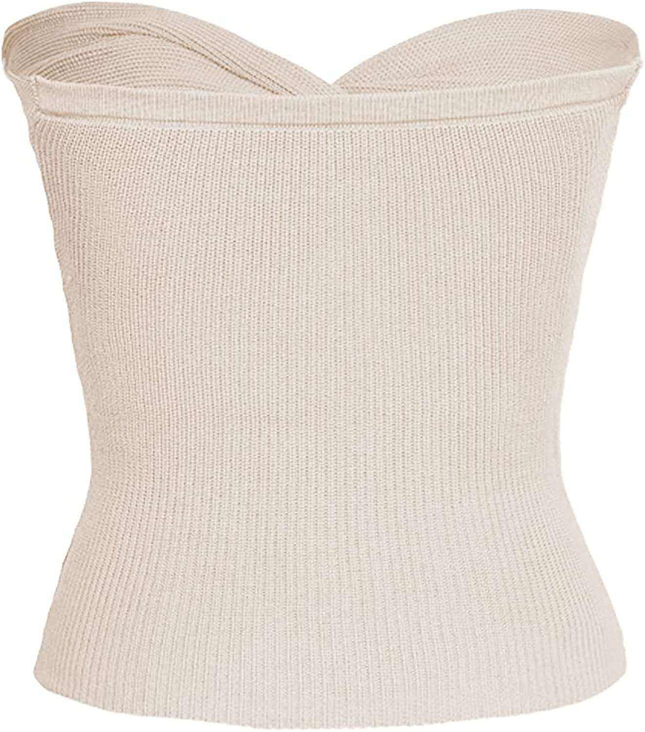 Womens Strapless Crop Top Sexy Sweetheart Neck Ribbed Knit Twisted Knot Front Sleeveless Y2K CamisoleTanks Top