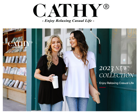 CATHY Womens Short Sleeve Casual T-Shirts V Neck Tops Tee Loose Comfy Tunic Blouse Lightweight Cute