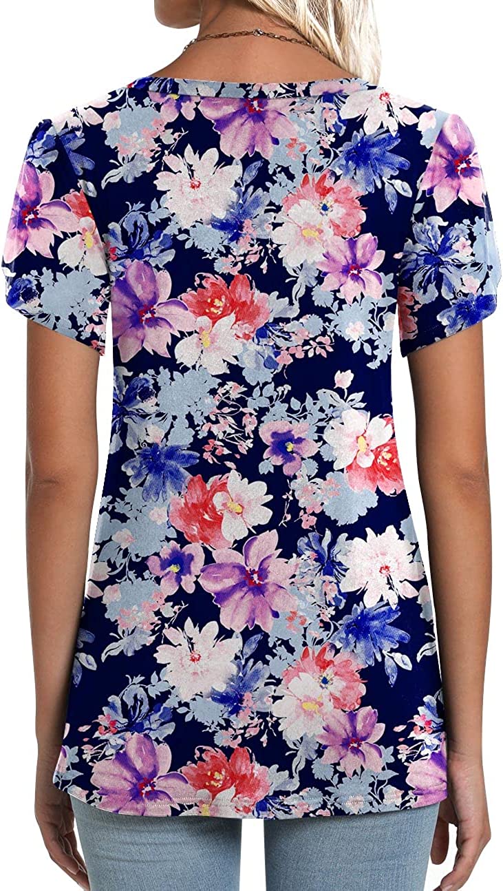 • ❤ 【 Features 】 casual tunic top, v neck tops tee, petal short sleeve tshirts, stretch loose blouse, solid color and print, on the hip length, sexy, plain, trendy and elegant.
