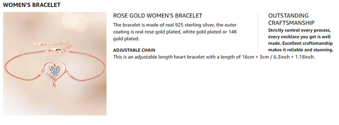 • Heart design: necklace design is elegant and beautiful. It is an eye-catcher and sparkling when worn on the wrist. In the middle a heart is inlaid with 5A cubic zirconia, next to it there is a delicate and small 5A zirconia that reflects the main stone. It stands for love and affection and is perfect as a gift for your girlfriend, family or friends.