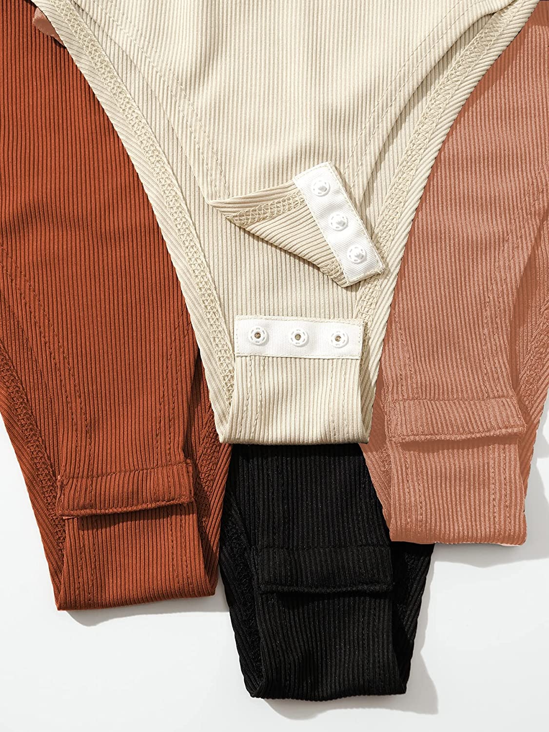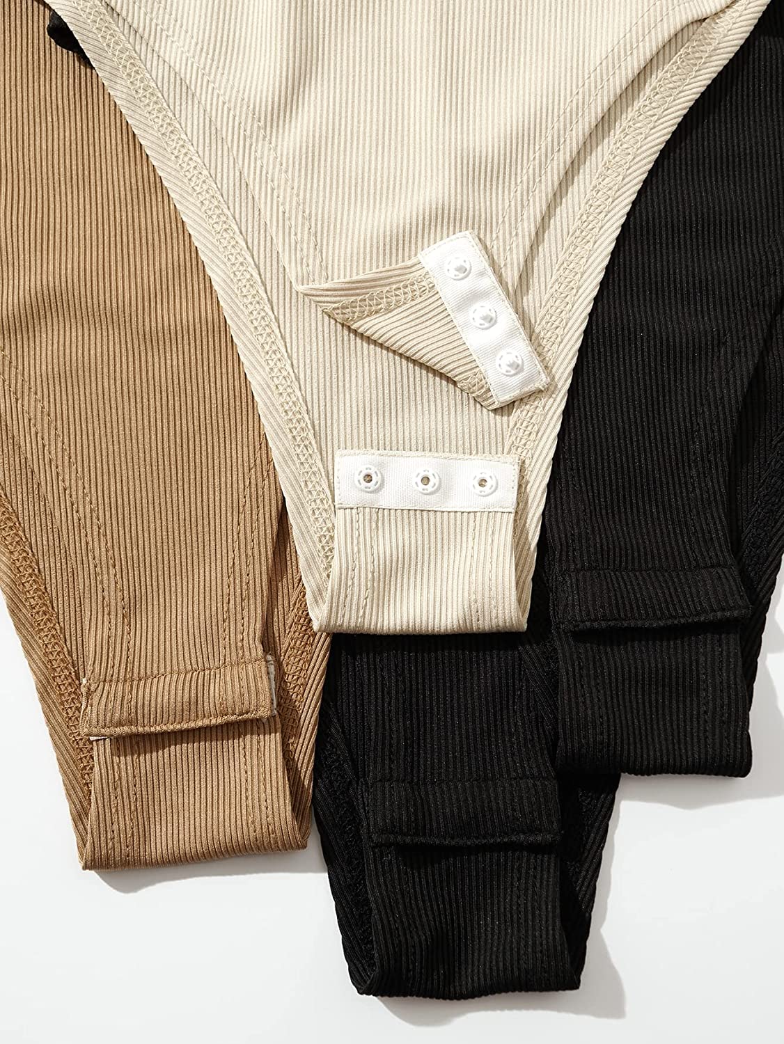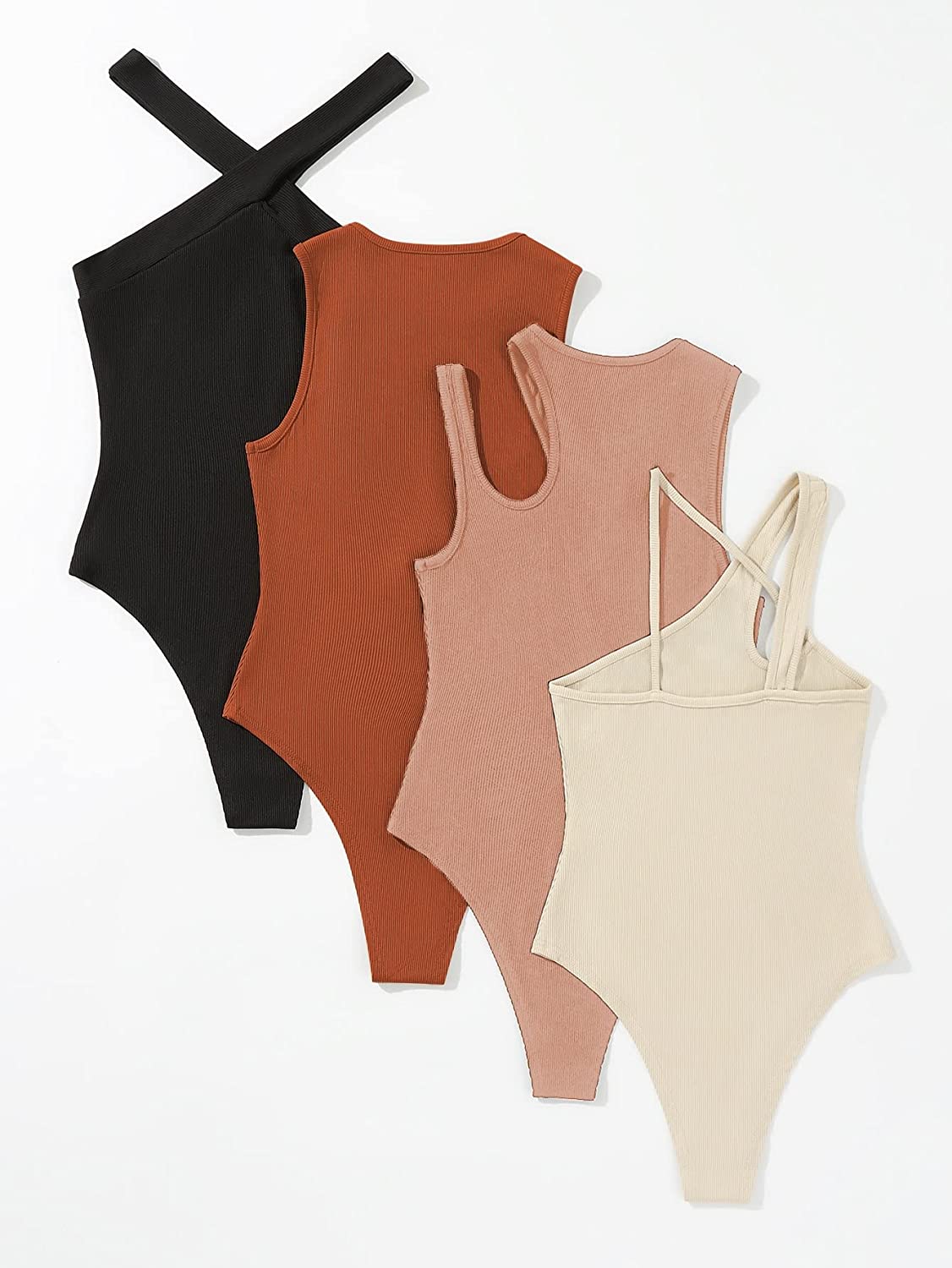 MakeMeChic Women's 4pcs Casual Solid Sleevelss Ribbed Knit Bodysuit Pack
