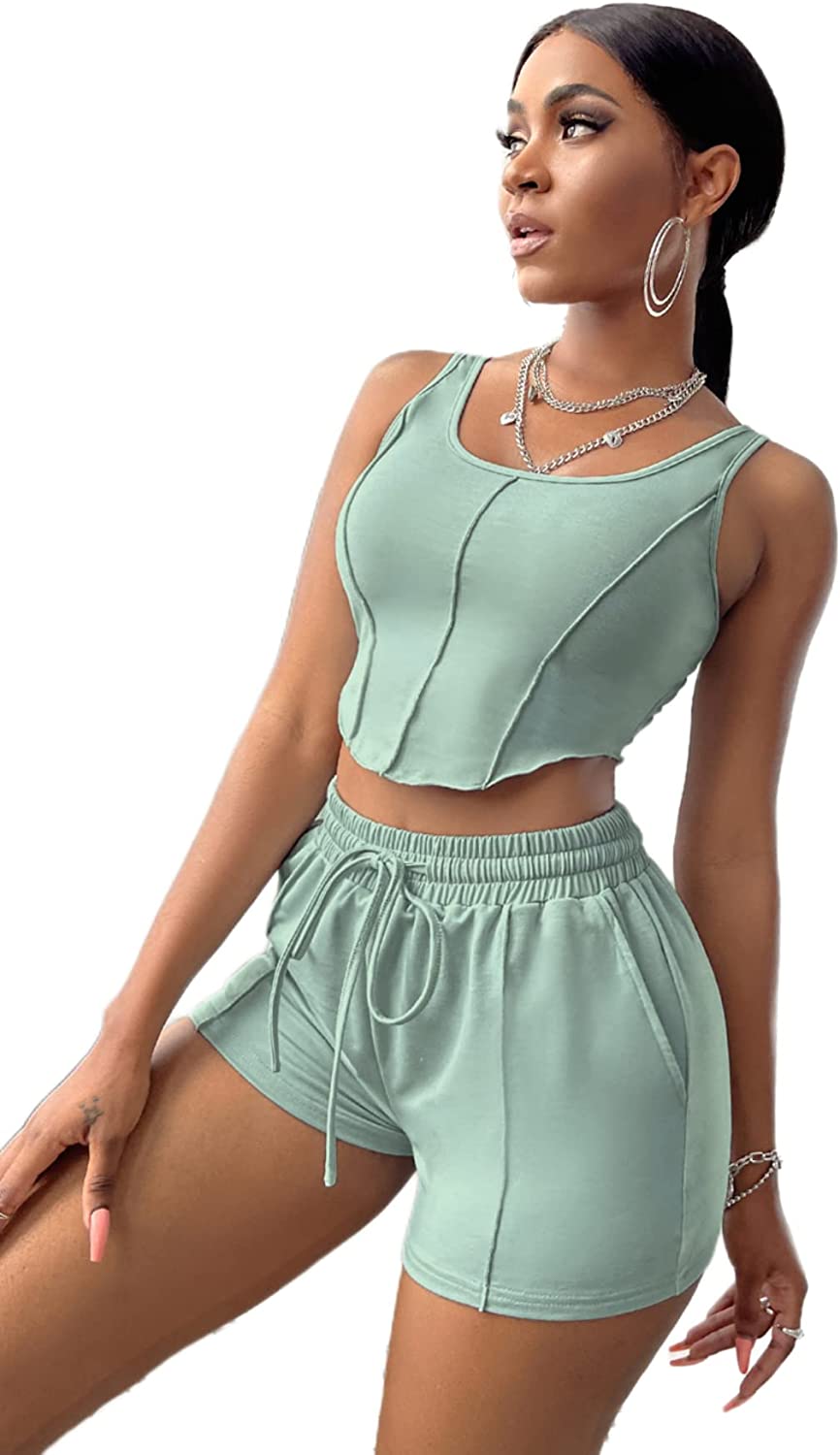 SOLY HUX Women's Crop Tank Top and Drawstring Waist Track Shorts Set 2 Piece Outfits