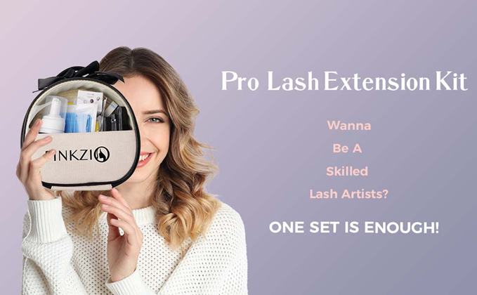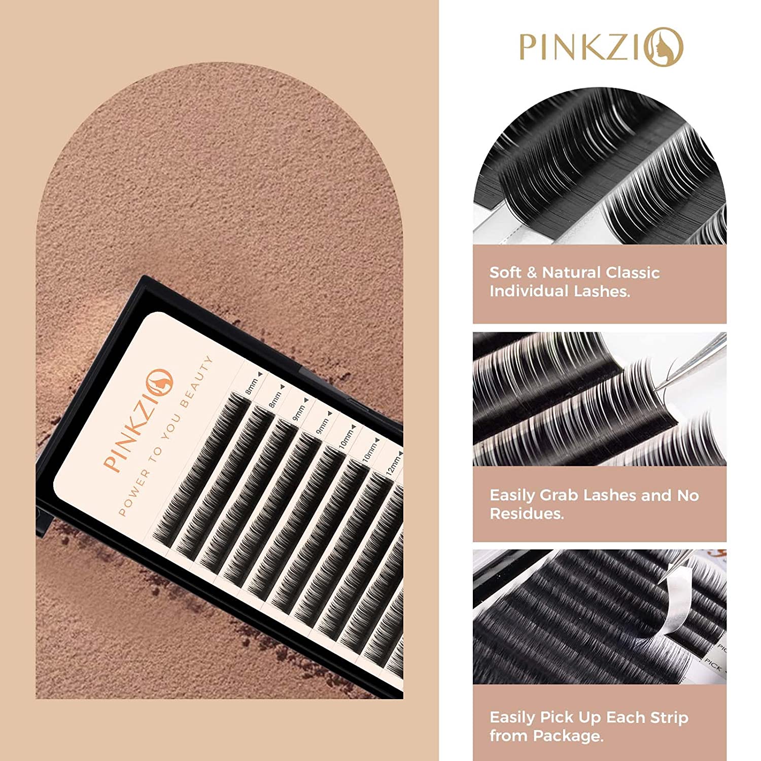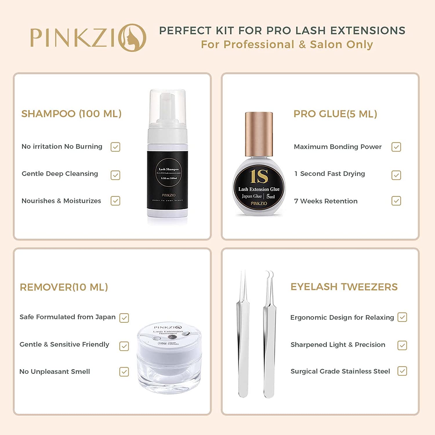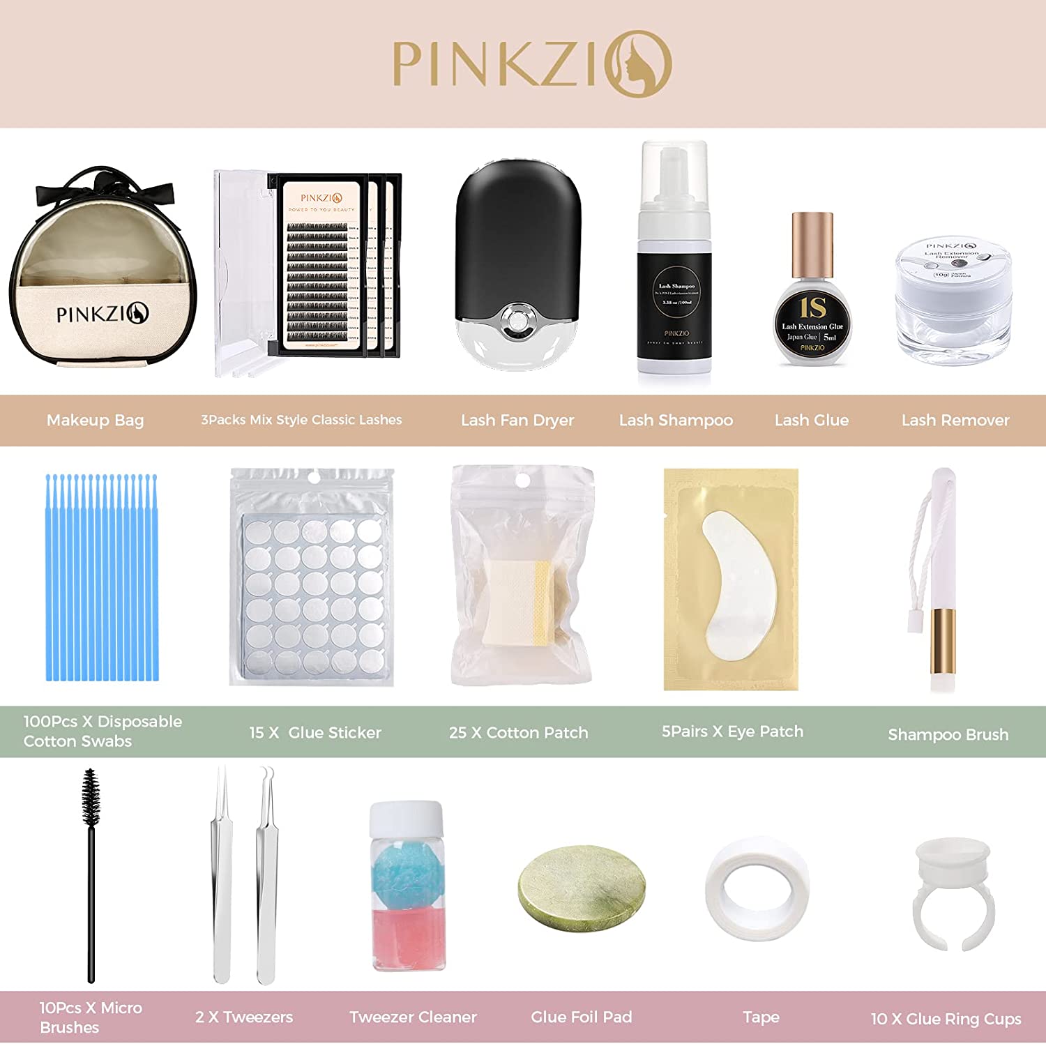 Professional 3D Faux Lash Extensions Kit - PINKZIO Eyelash Extension Supplies with Semi-Permanent Lash Extension Glue, Lash Remover, Precision Tweezer, Mascara Wand and Classic Lashes,White