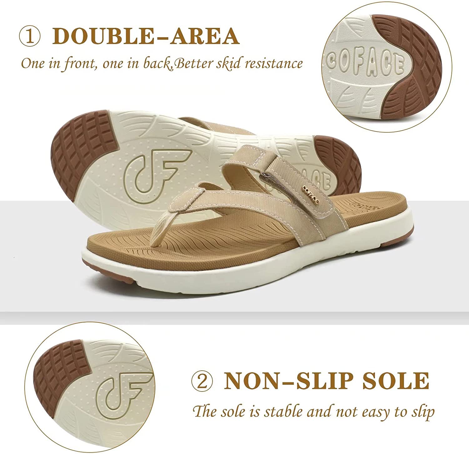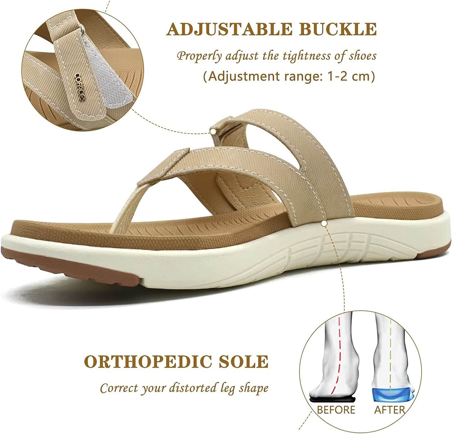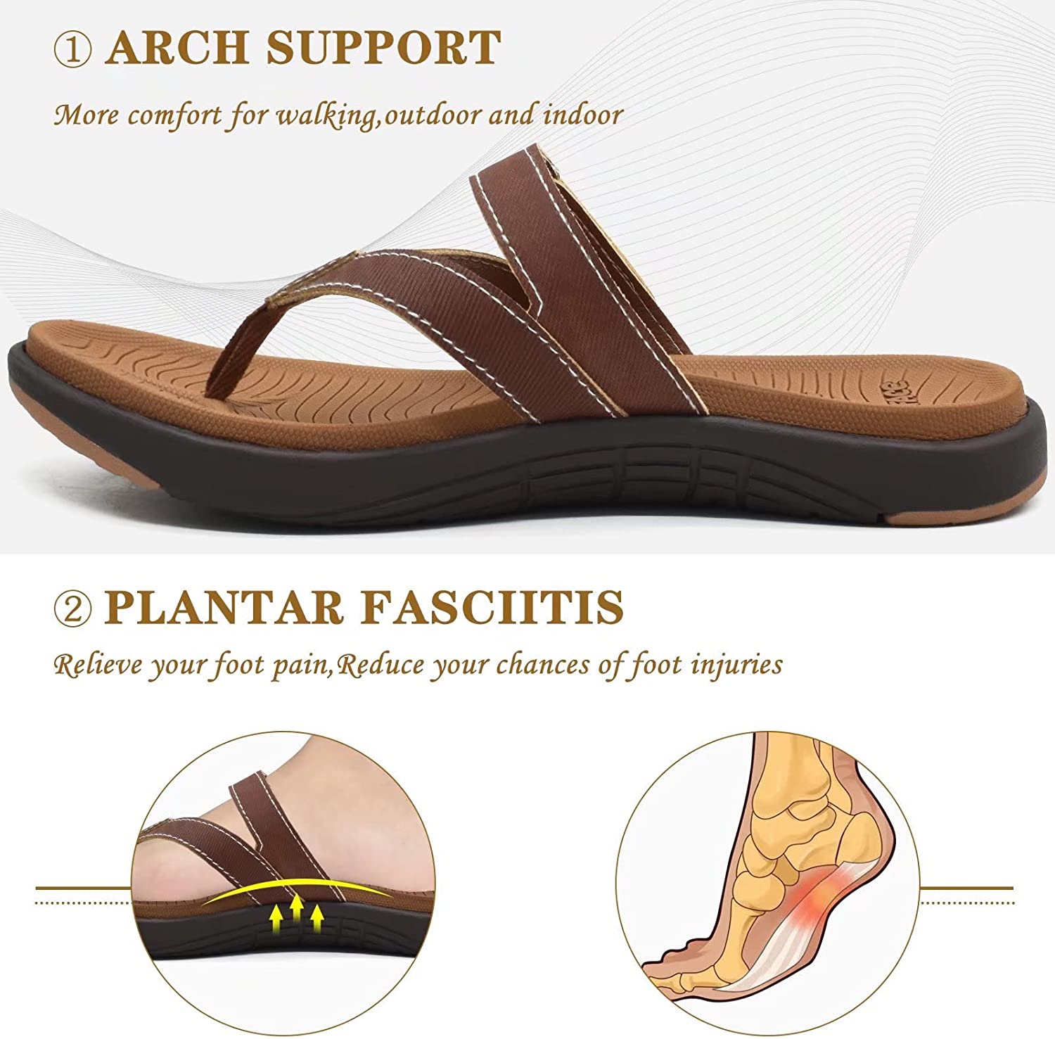 • ORTHOPEDIC ARCH SUPPORT womens flip flops are must haves and relief back and foot pain. Adjustable orthotic thong sandals for womens better fit your feet, will improve your gait and lessen foot issues like Plantar Fasciitis.