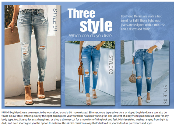 KUNMI Women's Ripped Boyfriend Slim Fit Jeans Frayed Distressed Stretchy Denim Pants