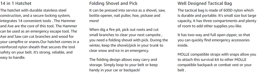 Included Components‎waterproof bag, 14 in1 hatchet, Flashlight,hooks ...