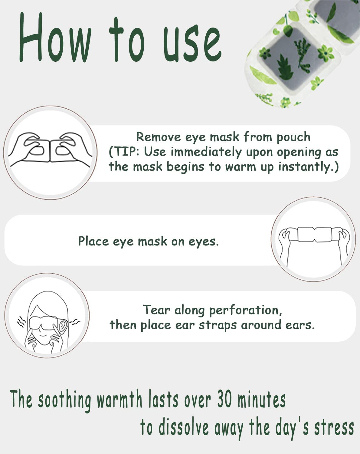 • Individually packaged for easy carrying. Each Eye Mask is self-heating instead of microwave heating or plug-in, which is safer and more convenient than many heated eye masks on the market.