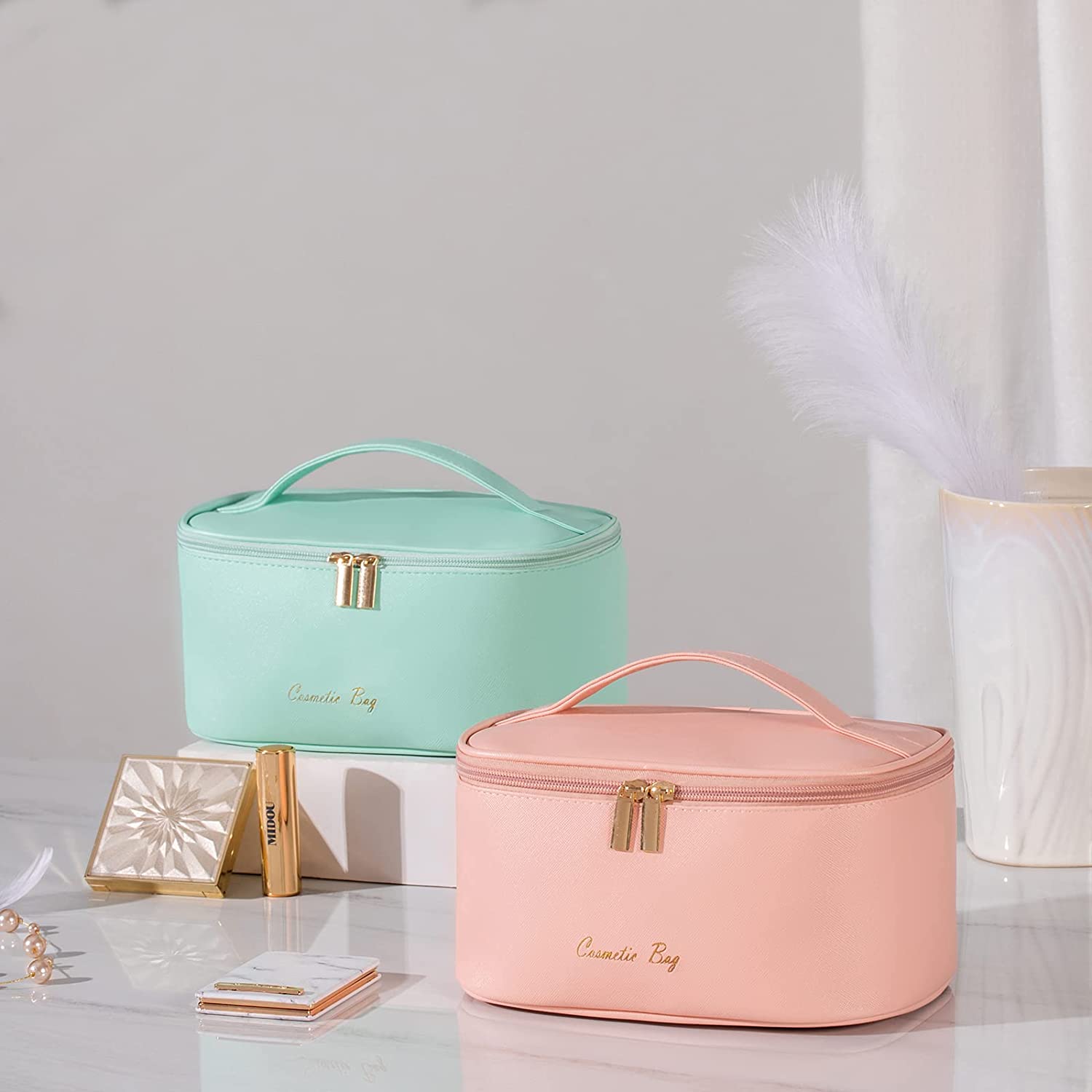 • ?PURE COLOR: Stylish and bright color design makes it a super cute makeup bag for girls, womens and men, it is simple and lightweight, can hold all your daily makeup products securely you need for your travel. Wide and firm handle for easy carrying