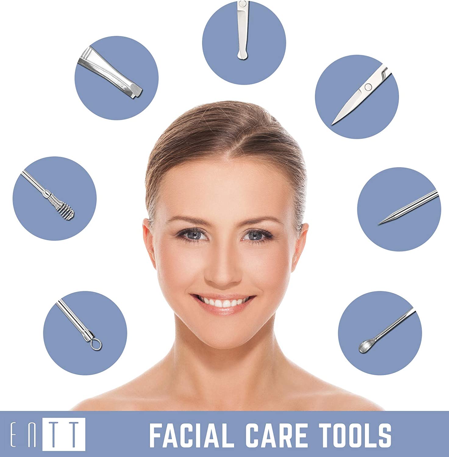 • ALL ROUNDER: One kit that includes tools for grooming your hands, feet and face. Now enjoy doing your own Manicures, Pedicures and facials at home carefully. The tools are of a professional grade stainless steel with a Matt finish. for a sturdy grip.