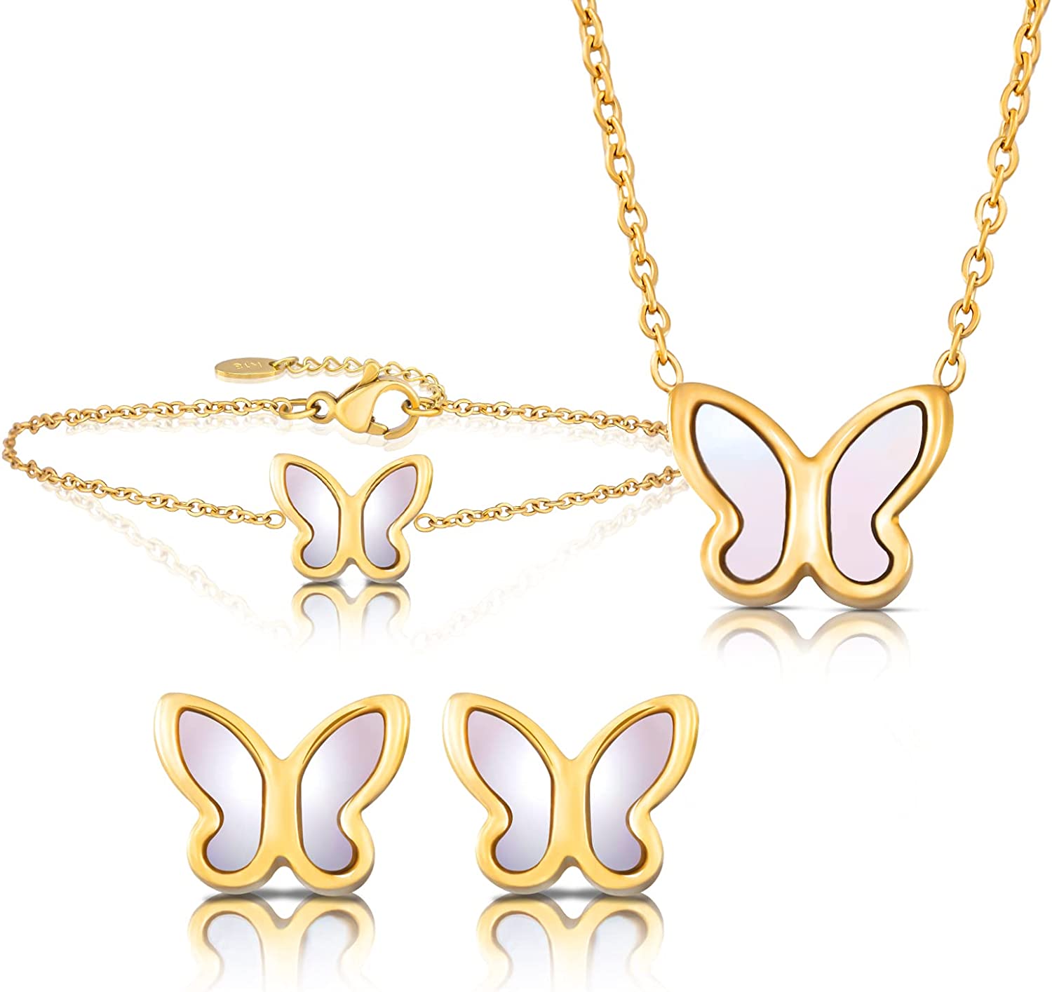 ✦ Butterfly Jewelry Set: You will have 3 different butterfly jewelry . it's including 1 pair earrings, 1 pcs necklace, 1 bracelet per one set. You can match different way according to your different clothes.Butterfly set designed of its inspiration of love and freedom,it is simple and beautiful, highlighting your nobility.