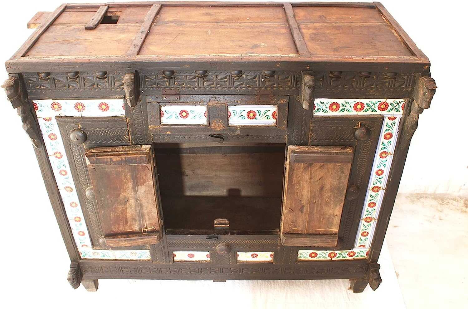 THE D.N.A. GROUP Antique Indian Wooden Damchiya Storage Box for Home and Table Décor