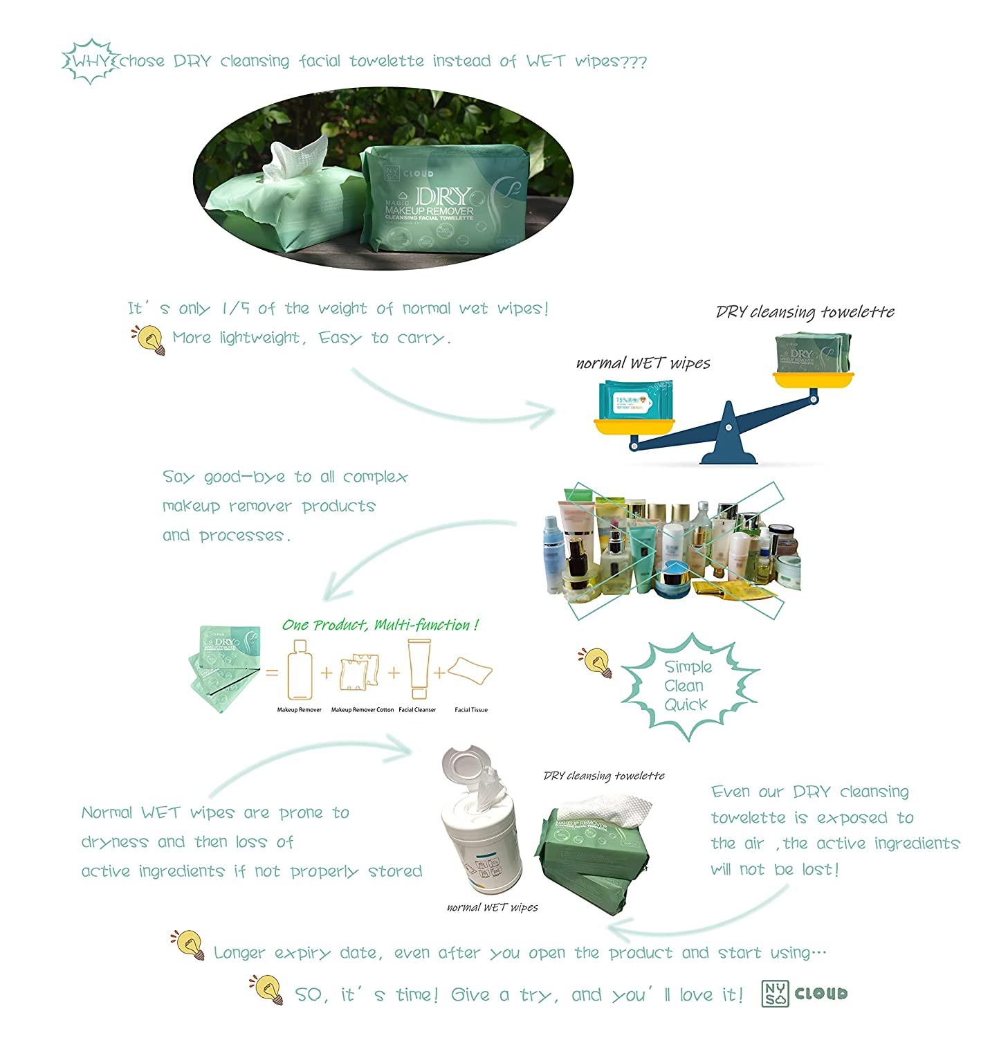 LIGHTWEIGHT compare with the normal wet wipes, it’s easy to carry. Also no need to carry a lot of bottles and jars for makeup remover during traveling or business trip. *Facilitate your travel*