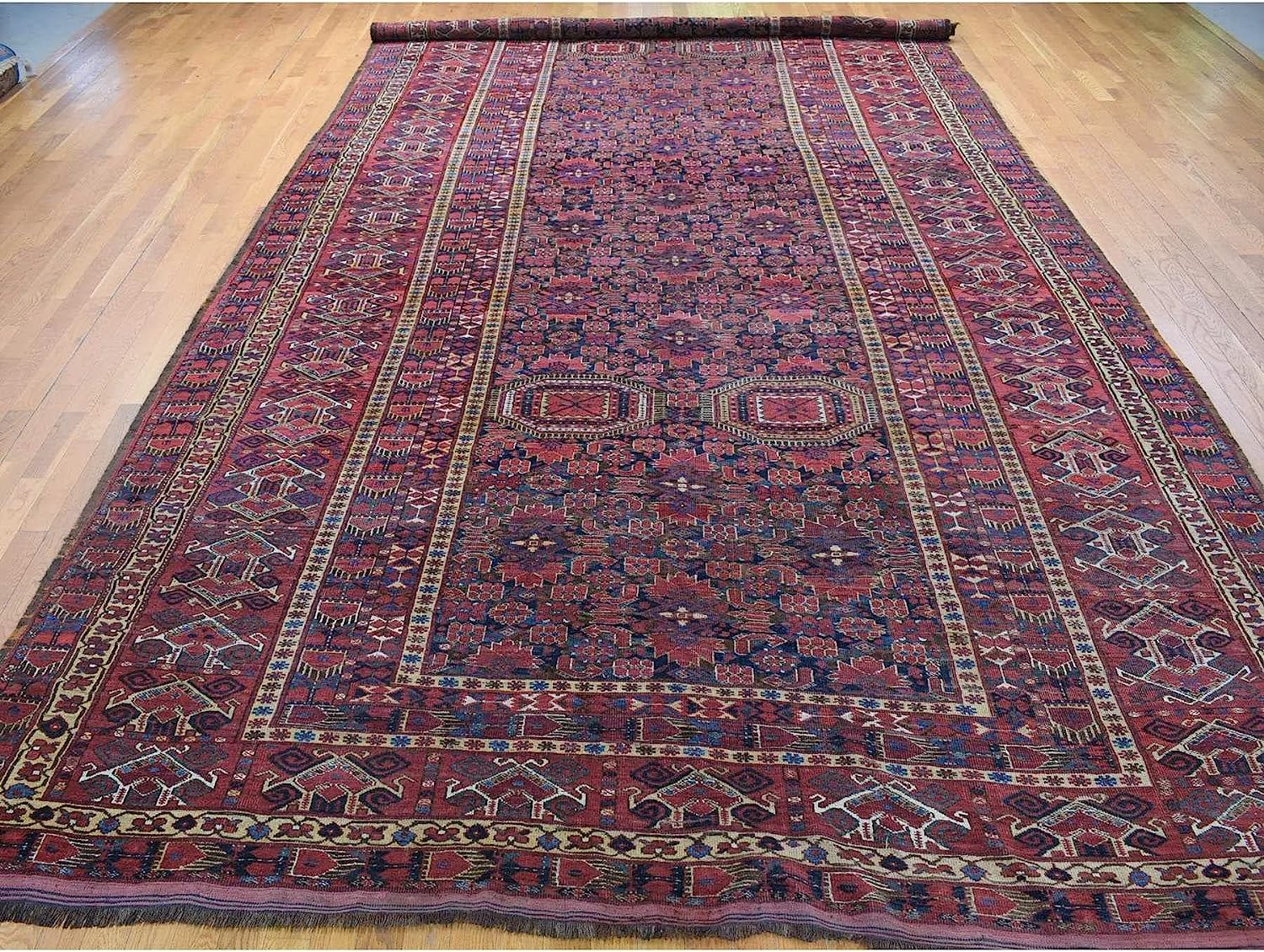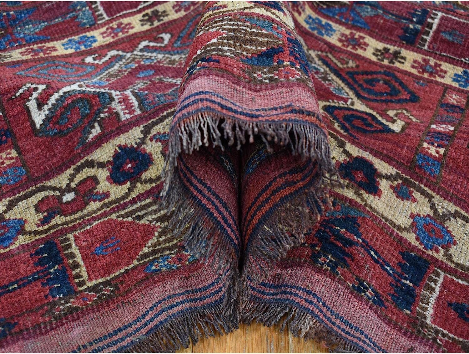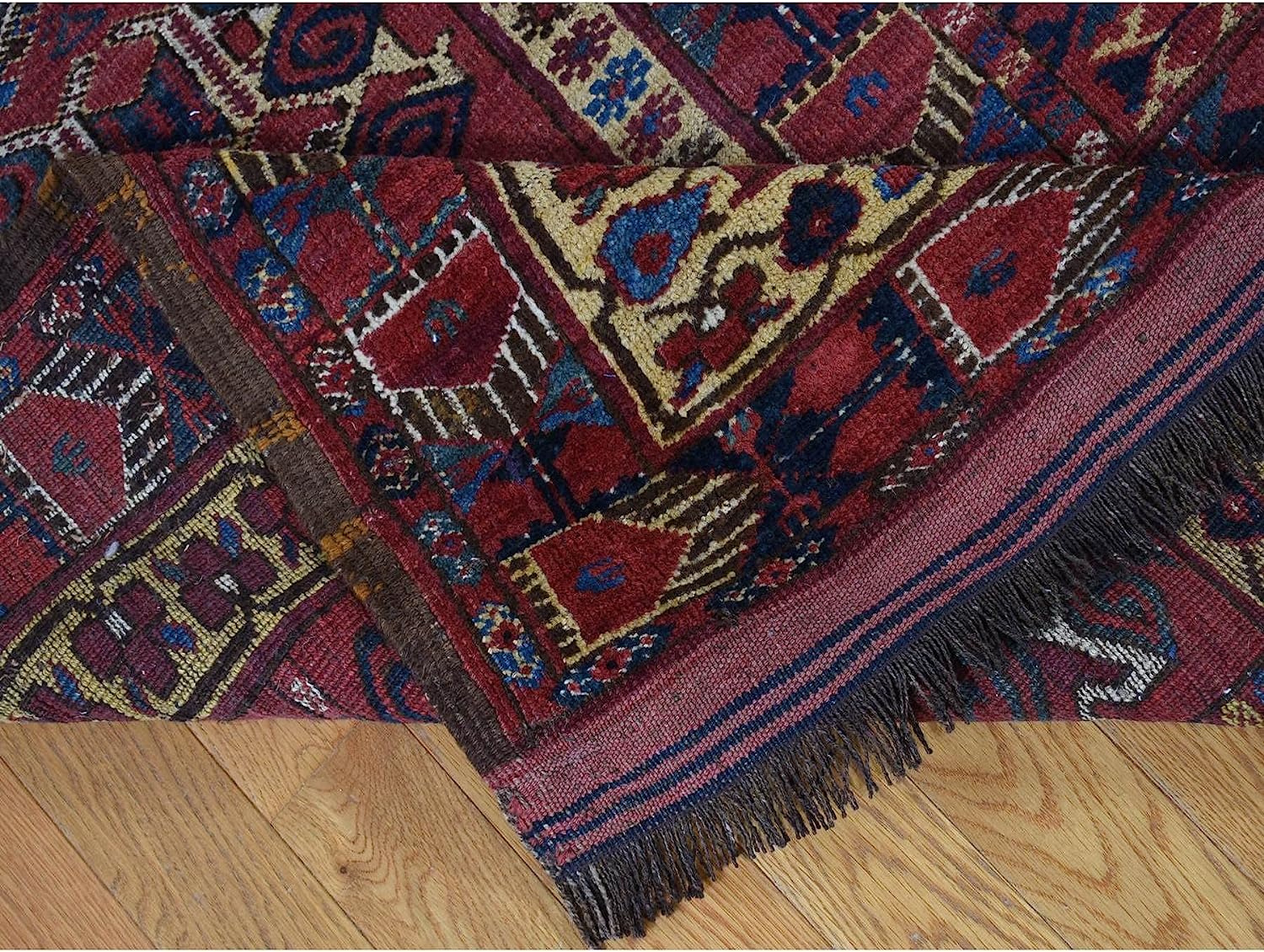 Shahbanu Rugs Midnight Blue Antique Afghan Beshir Geometric Hand Knotted Wool Rug (10'4" x 21'0")