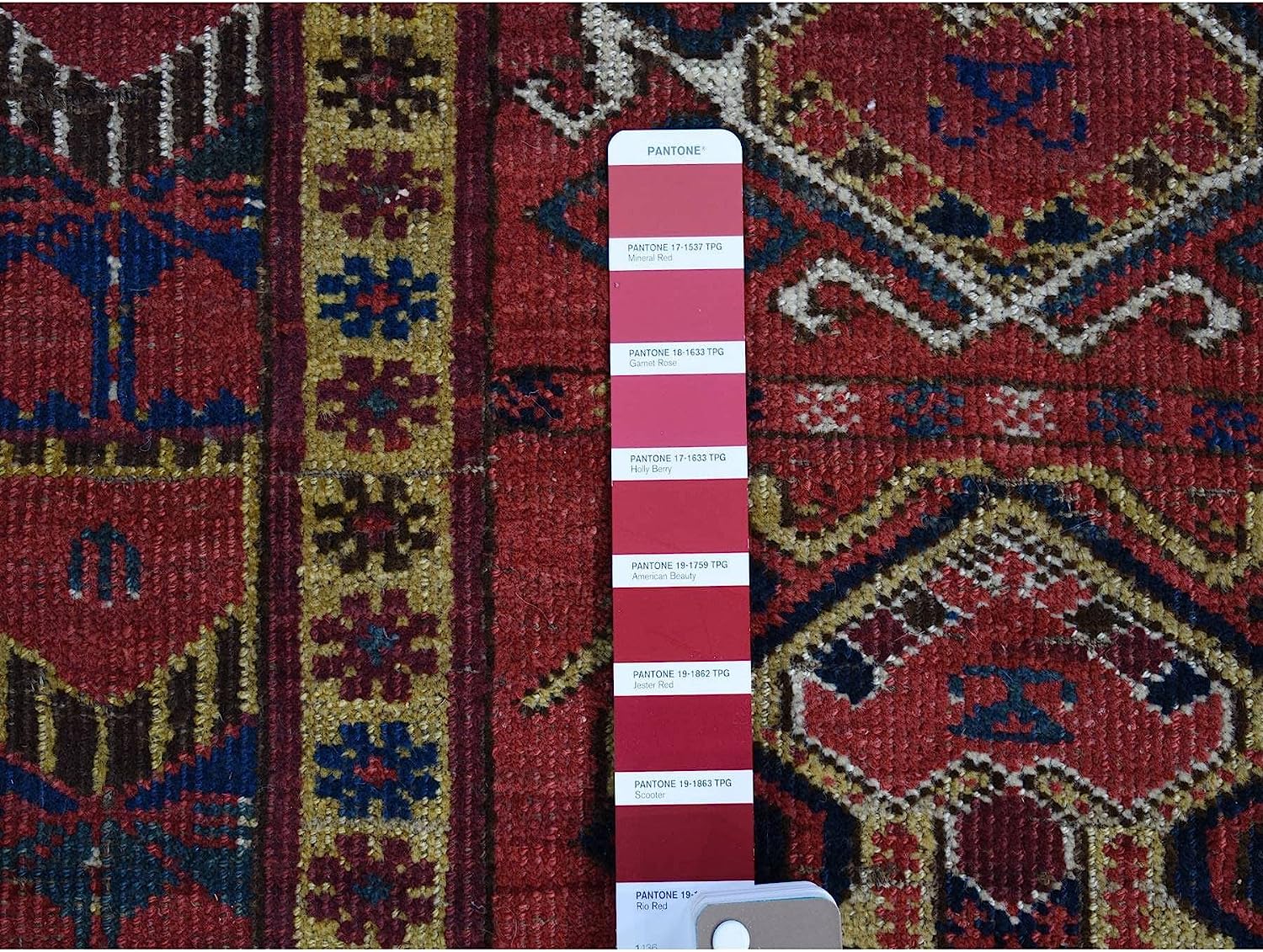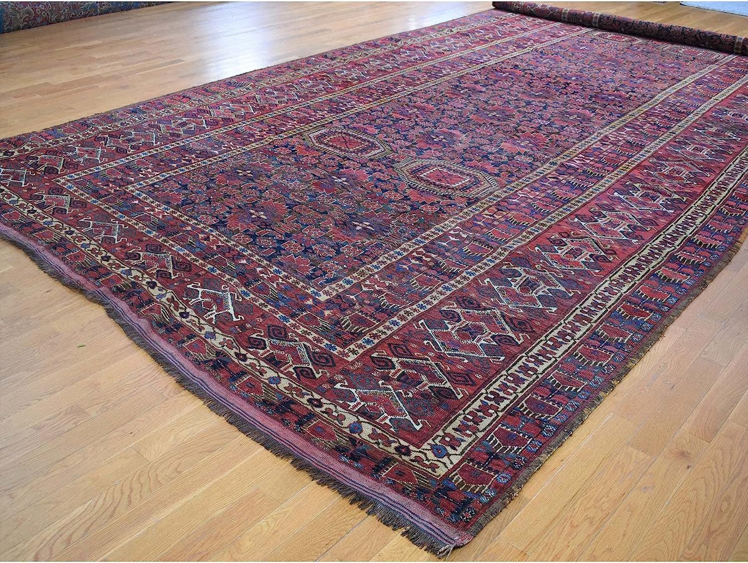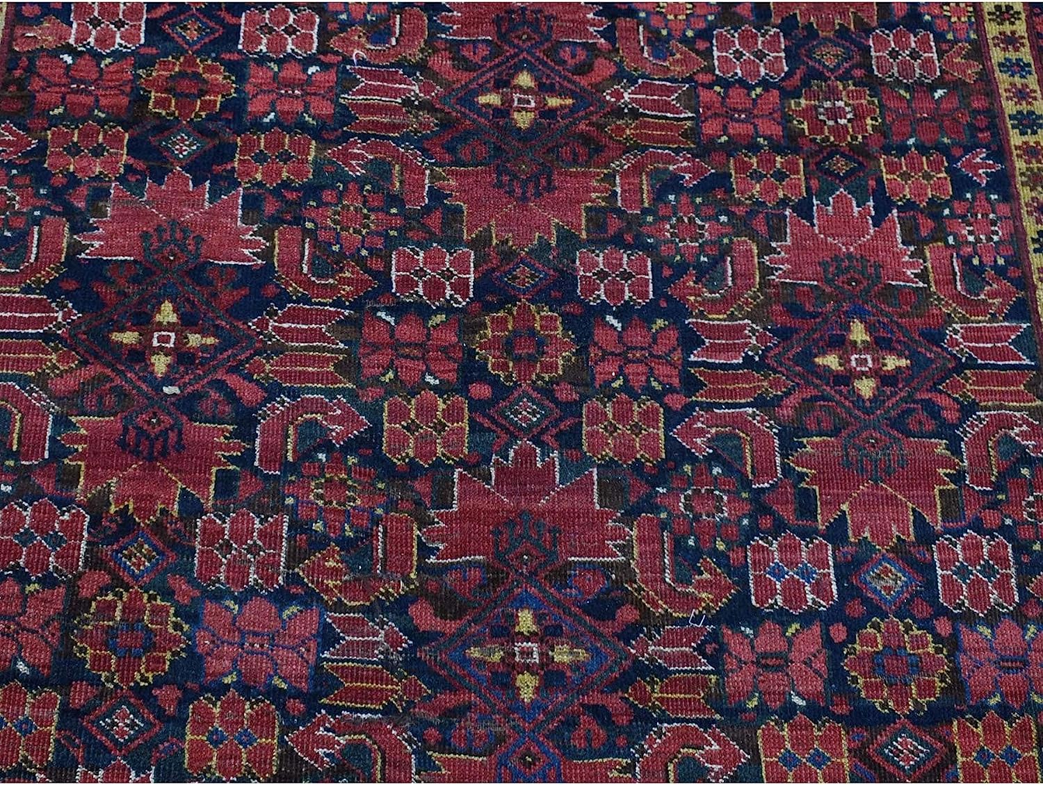 Shahbanu Rugs Midnight Blue Antique Afghan Beshir Geometric Hand Knotted Wool Rug (10'4" x 21'0")