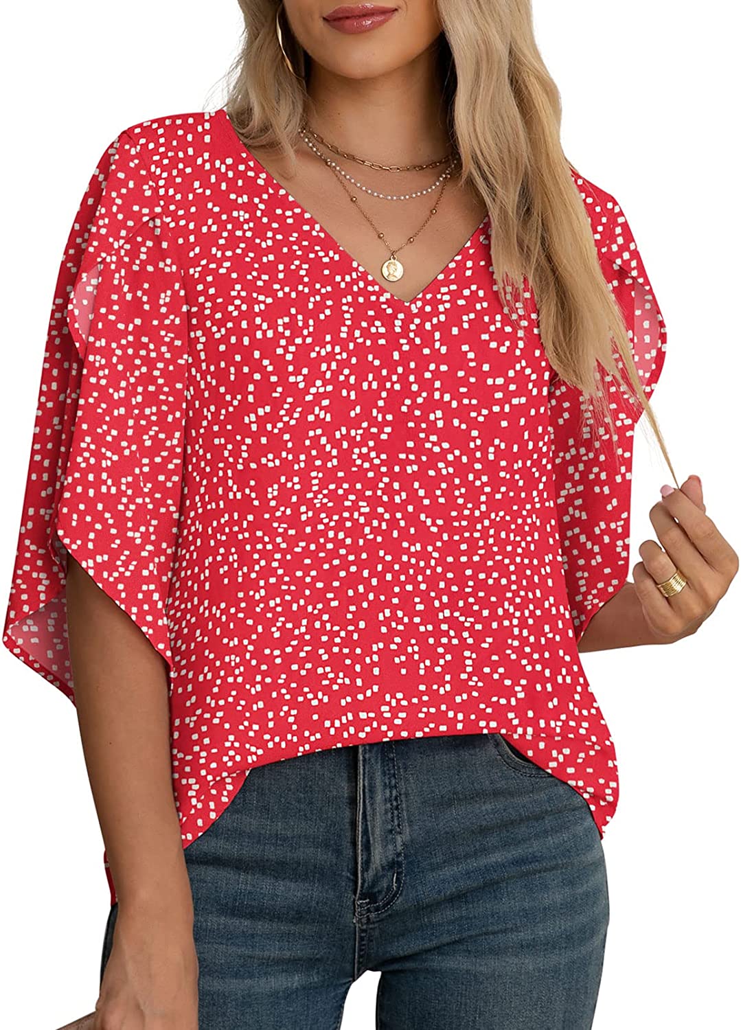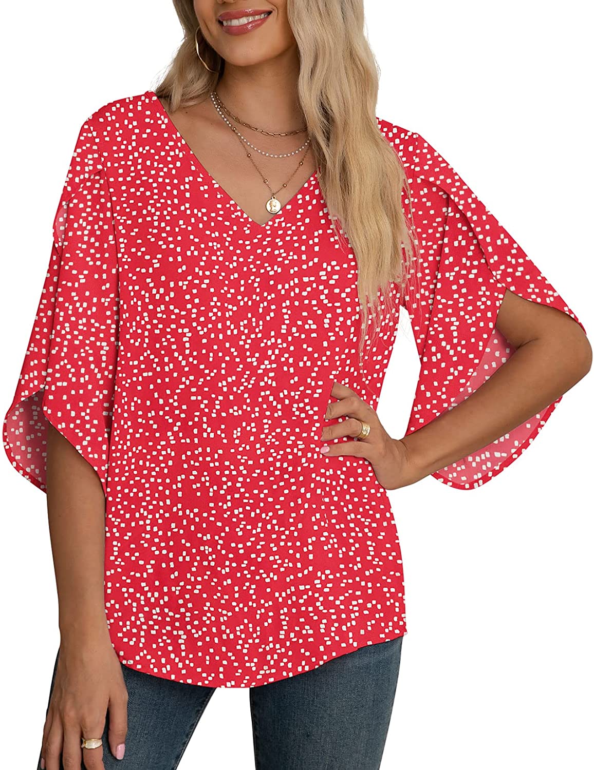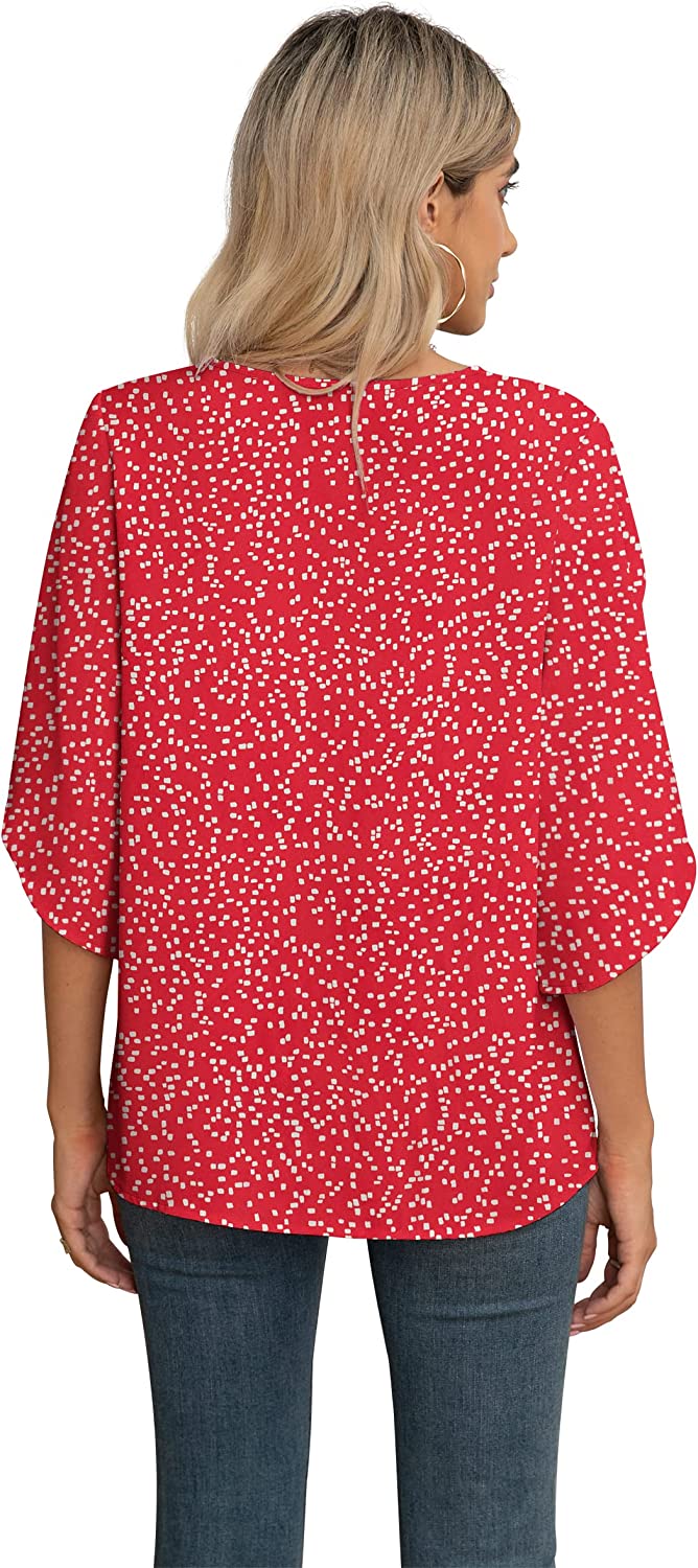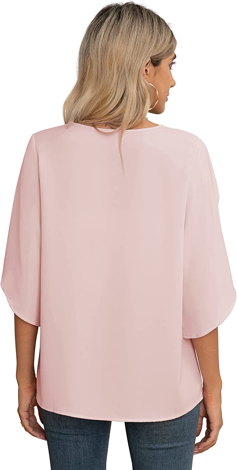 • Features:This loose fit chiffon blouses no ironing required,after washed and hung to dry can get rid of the wrinkles.V-neck,Half ruffle split 3/4 sleeve, Lightweight,flowy,and soft chiffon material,flowy,no see through,no shrink